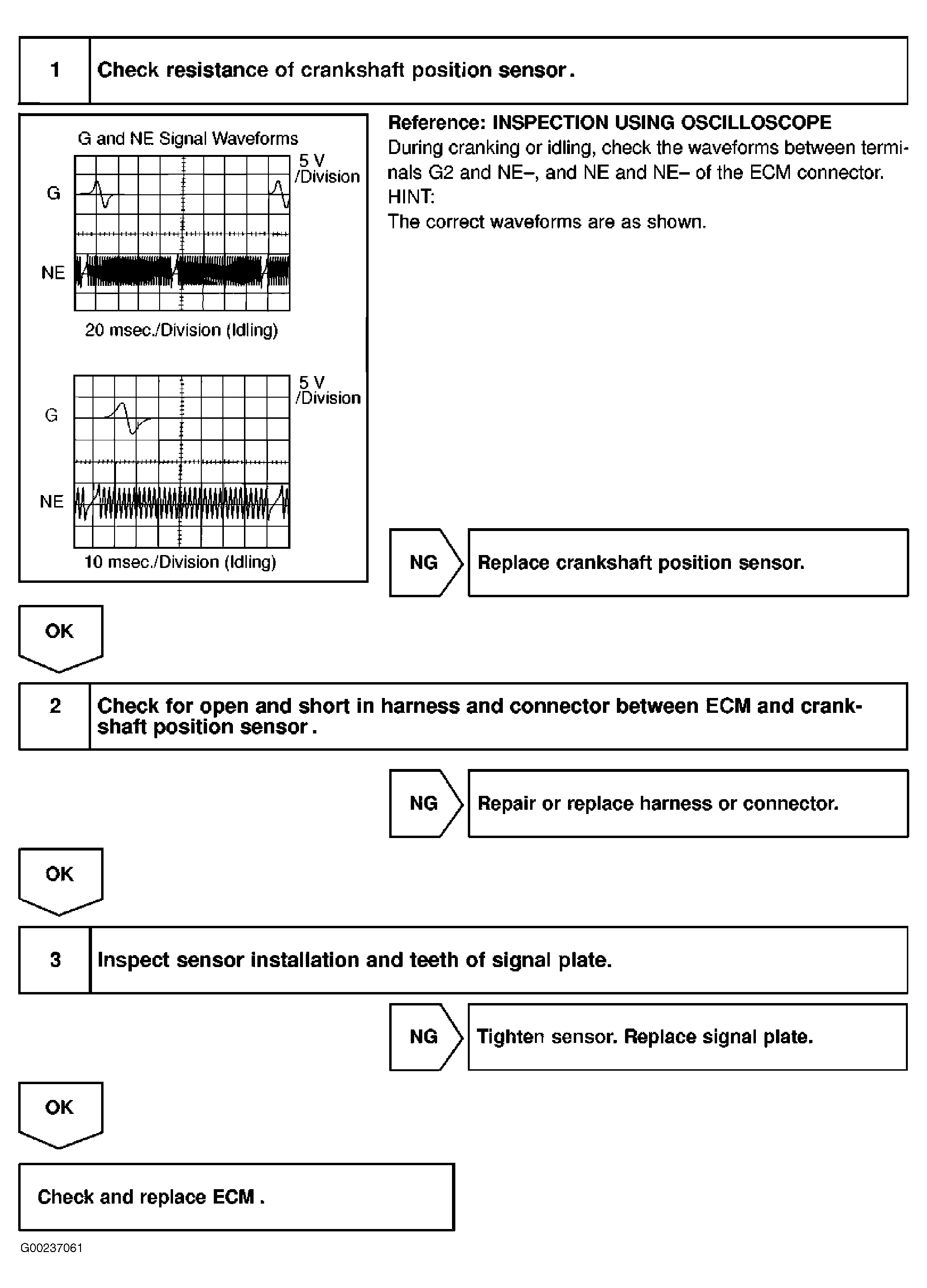 For diagnosis and repair procedure, see Fig 1. Crankshaft position sensor is located at front of crankshaft, near crankshaft pulley. See Fig 2.