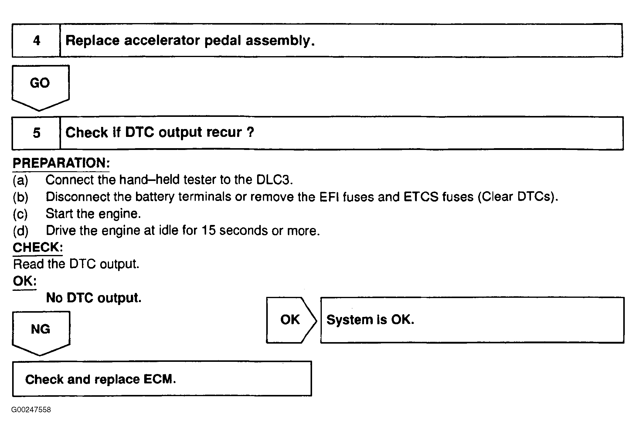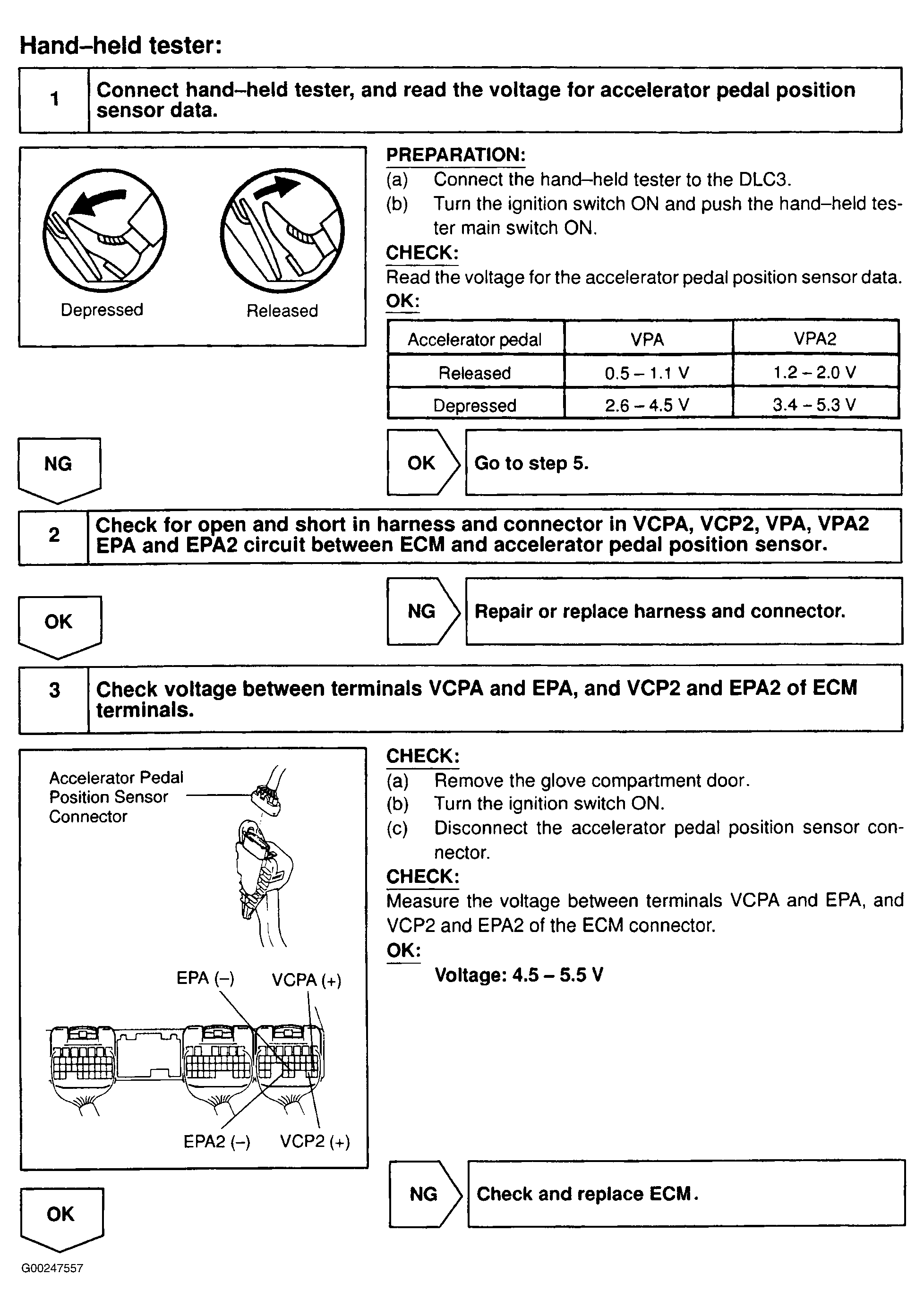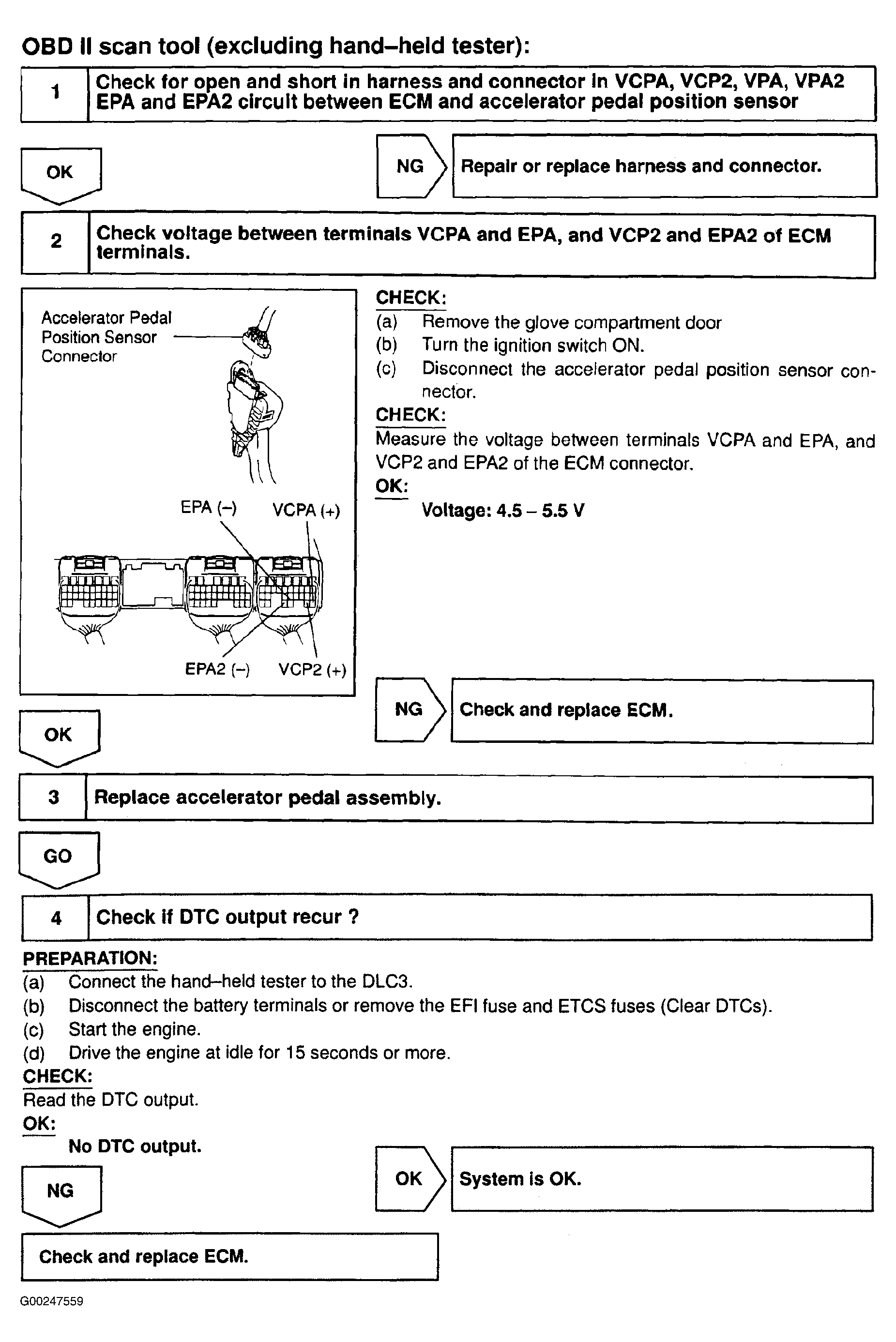 Fig 2: DTCs P2120, P2122 , P2123, P2125, P2127, P2128 & P2138 Diagnostic Procedure Using Hand Held Tester (Steps 4-5)
