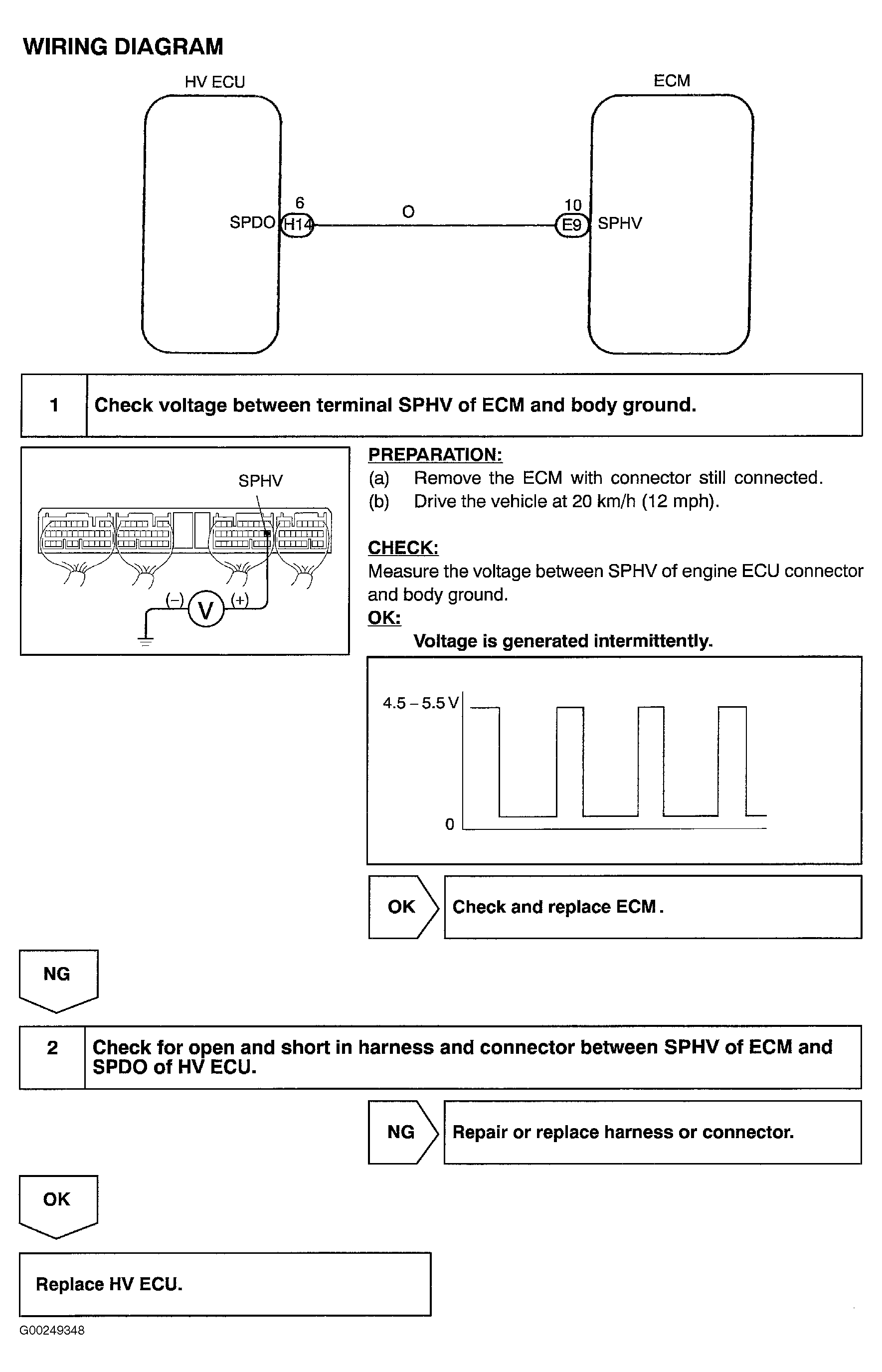 For ECM location, see Figure. For ECM connector terminal view, see Figure. HV ECU is located below carpet on floor panel, just below passenger's side of instrument panel. See Figure. For HV ECU connector terminal identification, see Figure.