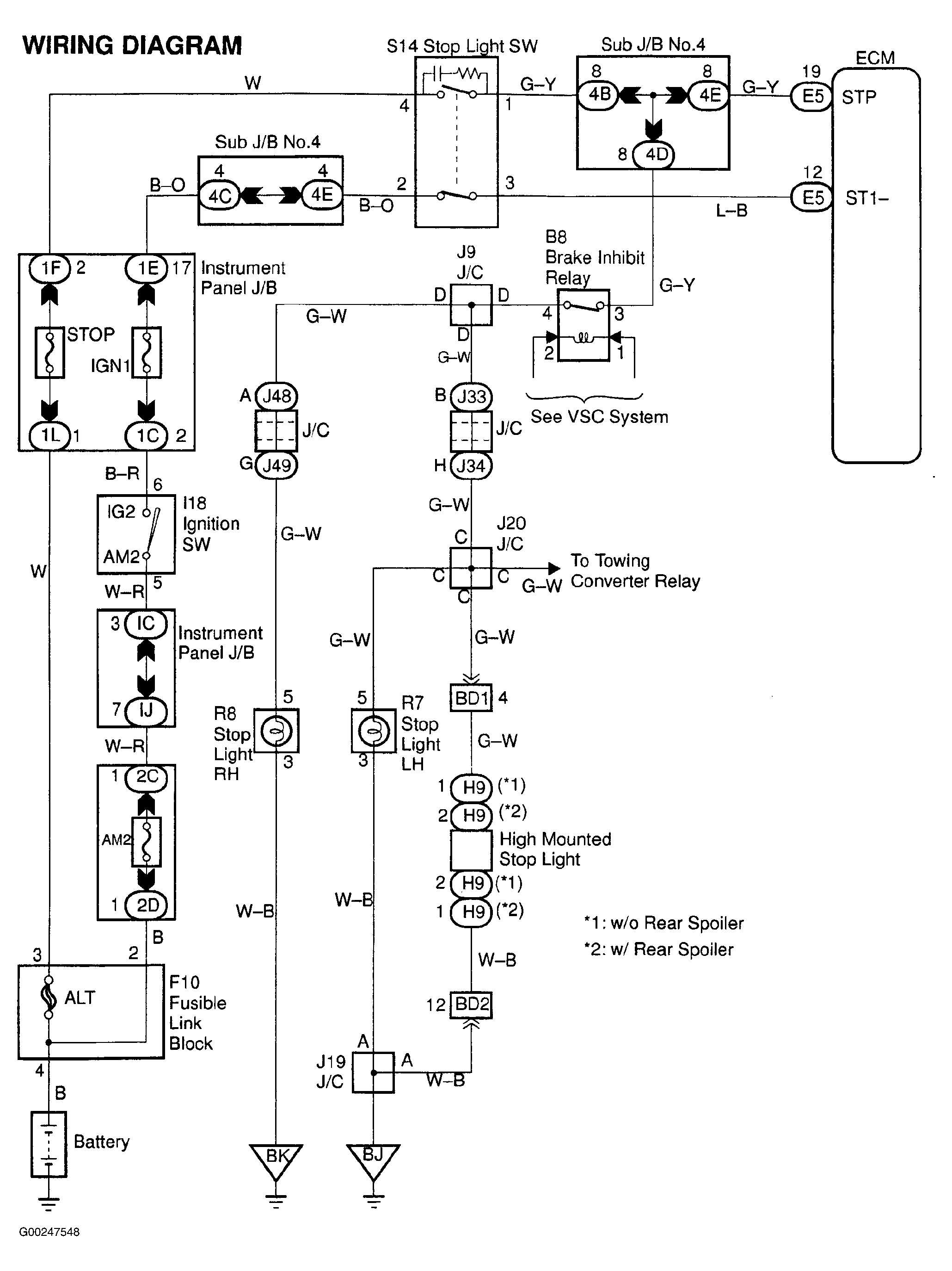 For ECM location, see Figure. For ECM connector view, see Figure. For brake switch circuit wiring diagram, see Fig 2. For testing of systems or components, see SYSTEM & COMPONENT TESTING - V6 & V8 article. For adjustments, see ON-VEHICLE ADJUSTMENTS - V6 & V8 article. For removal and installation of components, see REMOVAL & INSTALLATION - V6 & V8 article.