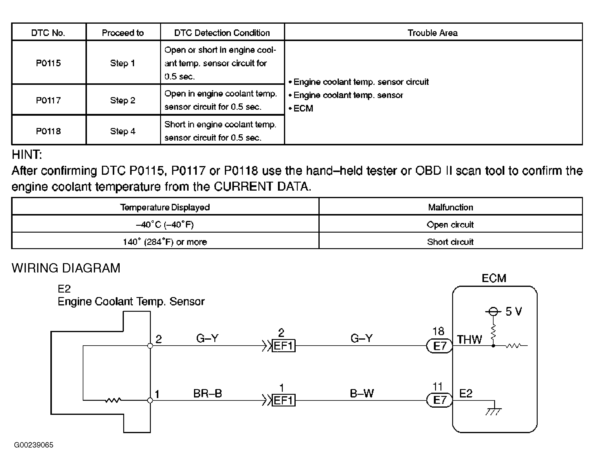 Fig 1: DTCs P0115, P0117 & P0118 Detection Conditions, Possible Causes & Wiring Diagram