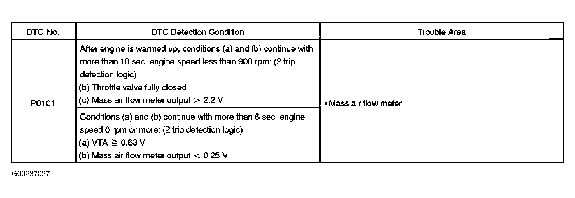 This DTC use two-trip detection logic. For DTC detection conditions and possible causes see Fig 1.