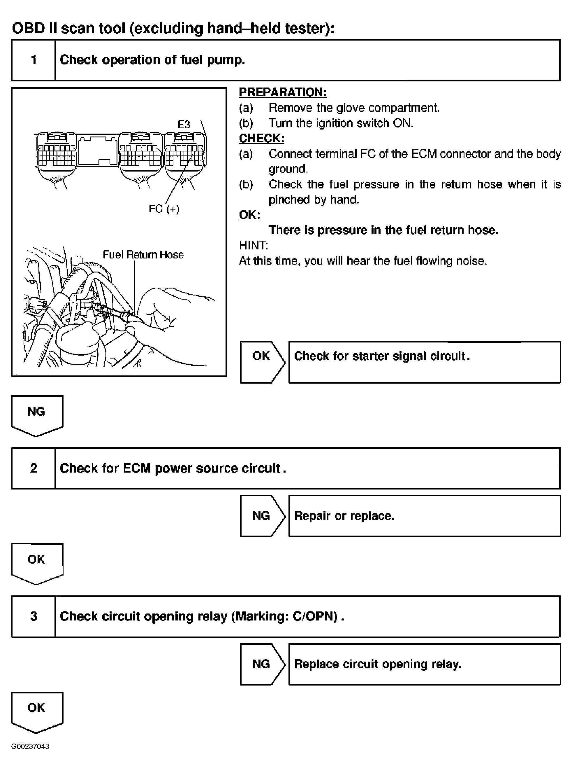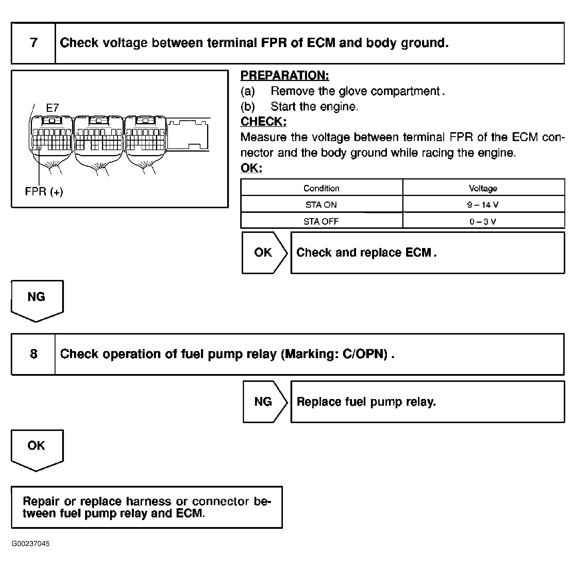 Home >> Toyota >> 2004 >> Matrix Base, FWD, Automatic >> Repair and Diagnosis >> External Pages >> Different car >> Section 135 (Engine Control System Self Diagnostics - V8) >> Diagnostic Tests >> DTC P0230: Fuel Pump Primary Circuit >> Diagnosis & Repair