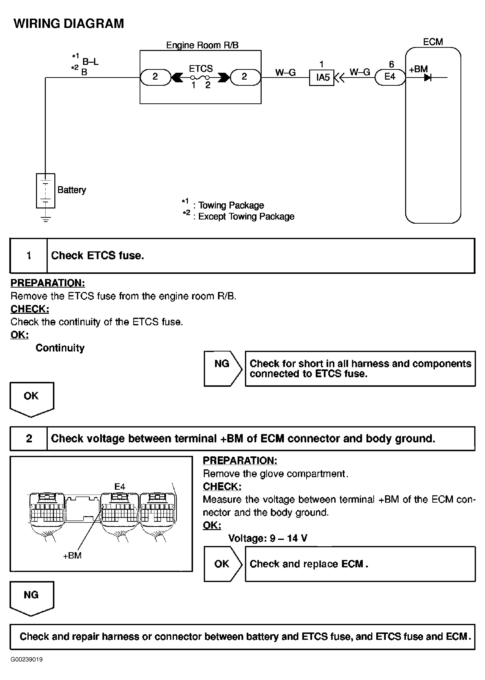For wiring diagram and diagnosis and repair procedure, see Fig 1. For ECM location, see Figure. For ECM connector view, see Figure. For testing of systems or components, see SYSTEM & COMPONENT TESTING - V6 & V8 article. For removal and installation of components, see REMOVAL & INSTALLATION - V6 & V8 article.