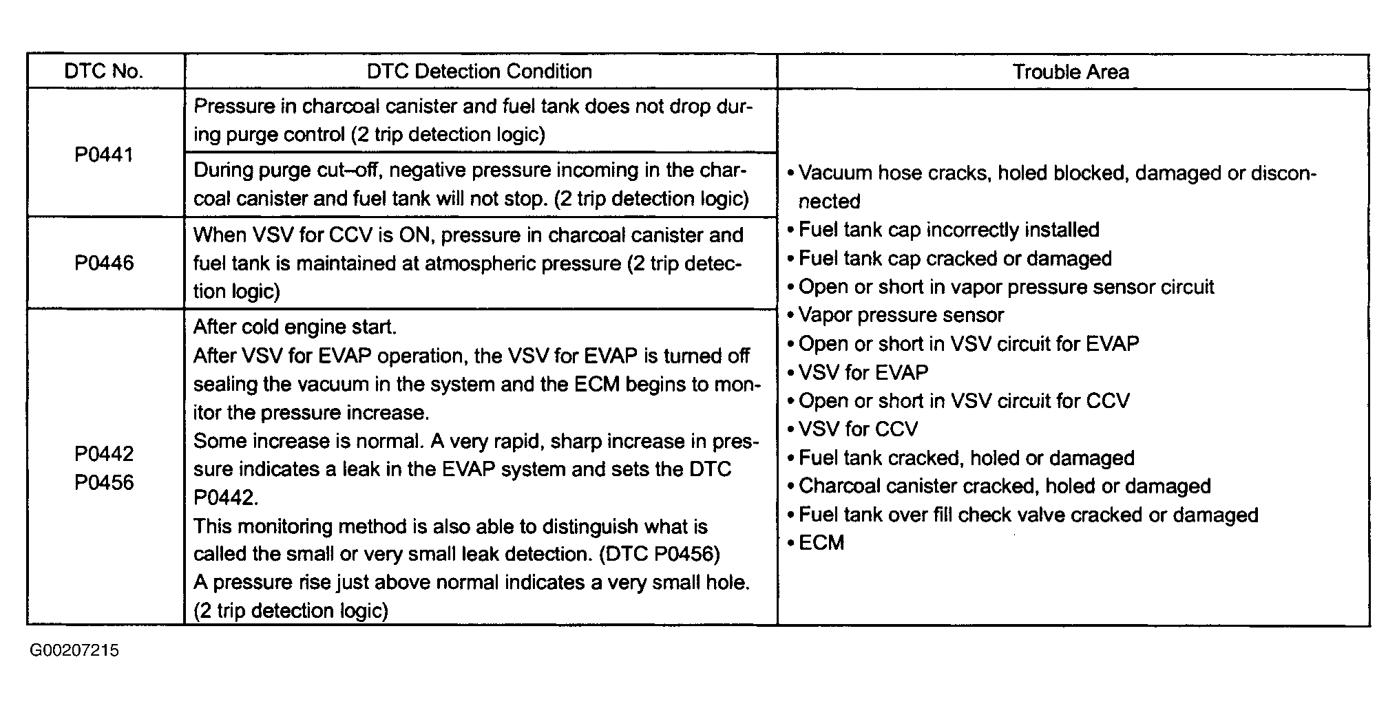 Fig 1: Possible Causes For DTCs P0441, P0442, P0446 & P0456