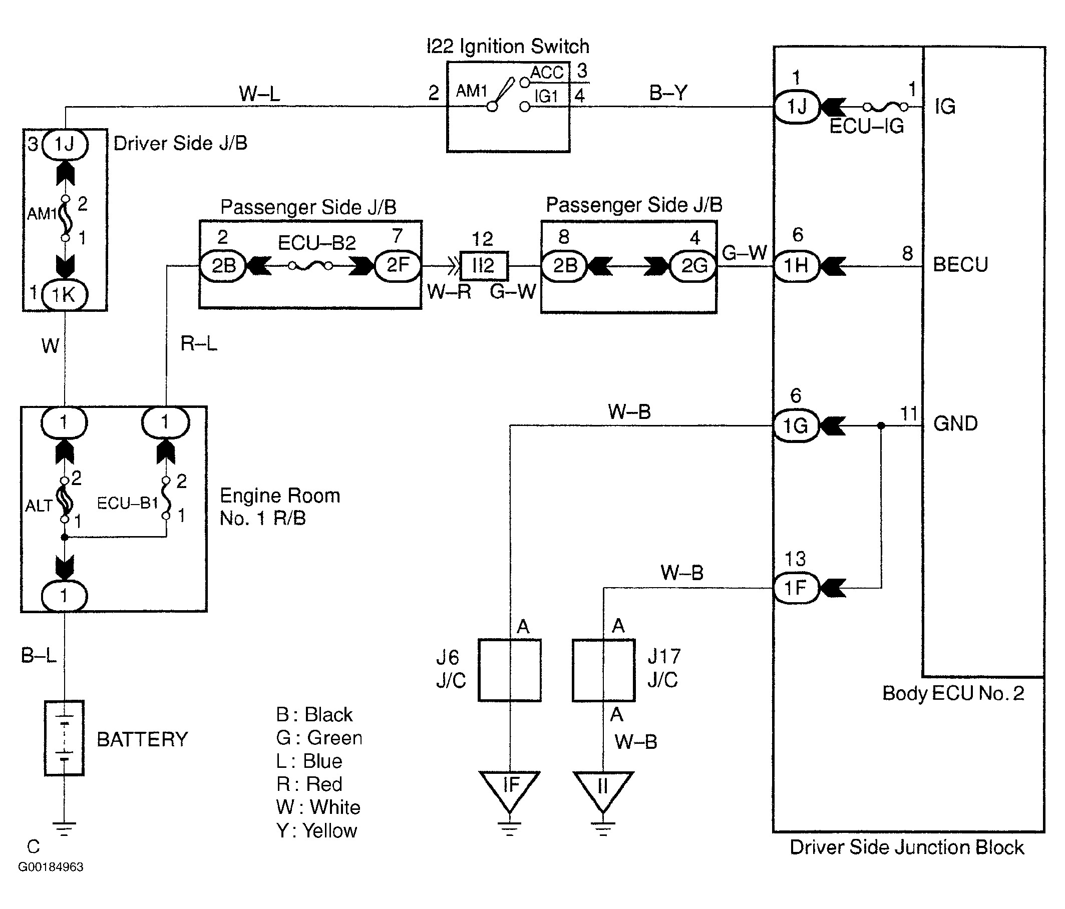 - Check the continuity of the ECU-B2 and ECU-IG fuses. See COMPONENT LOCATIONS table. If there is continuity, go to the next step. If there is not continuity, replace the failed fuse.