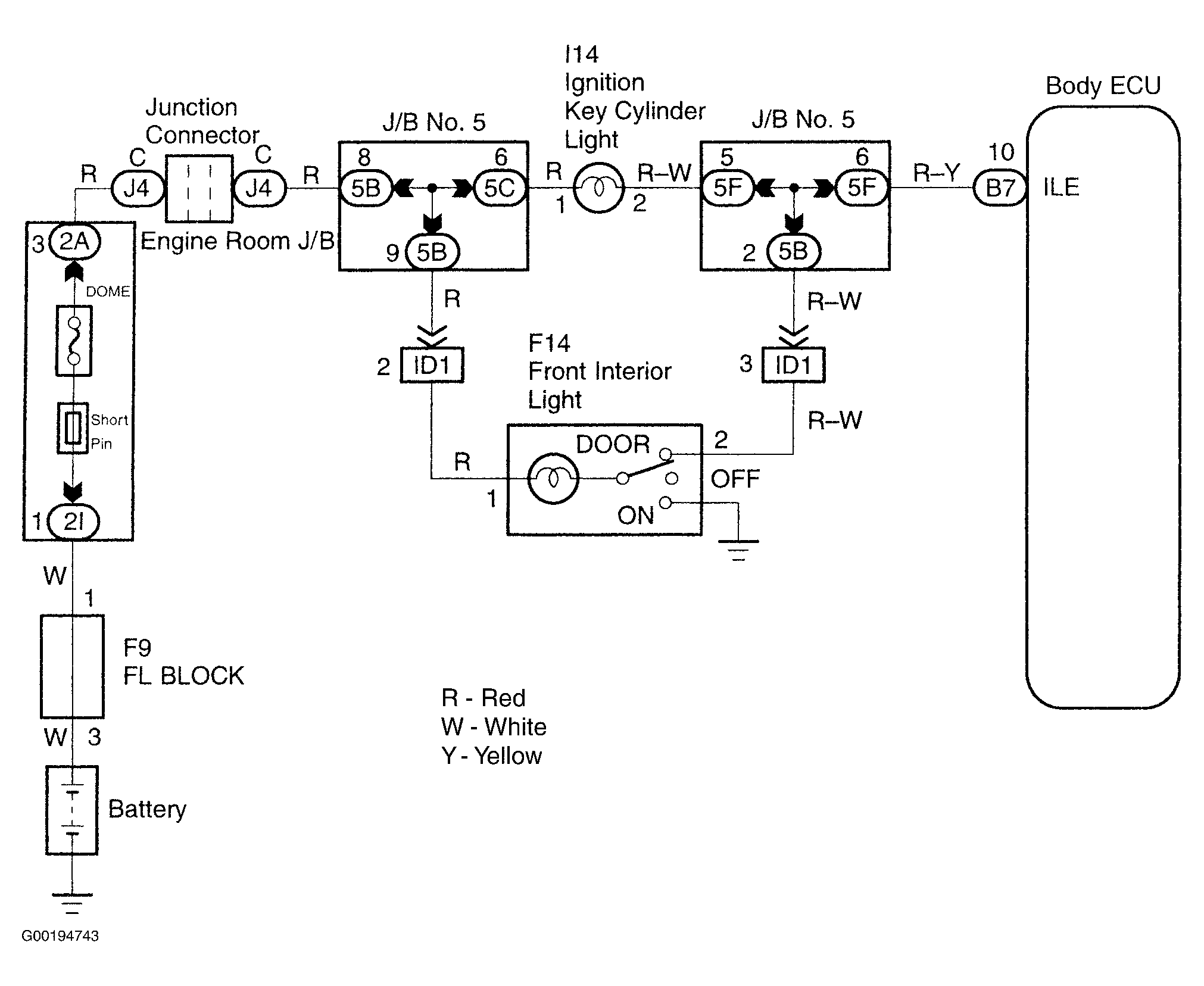 Receiving the courtesy signal from either of the door ECU, the body ECU will make the front interior light and ignition light, come on. See Fig 1.