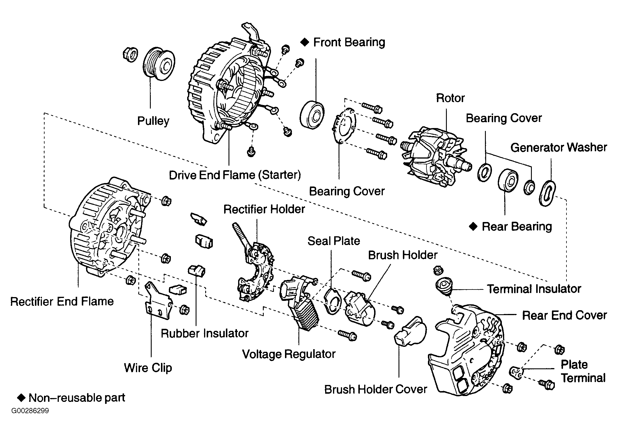 Home >> Toyota >> 2004 >> Matrix Base, FWD, Automatic >> Repair and Diagnosis >> External Pages >> Different car >> Section 304 (Charging System - Generators & Regulators) >> Overhaul >> Generator >> Disassembly