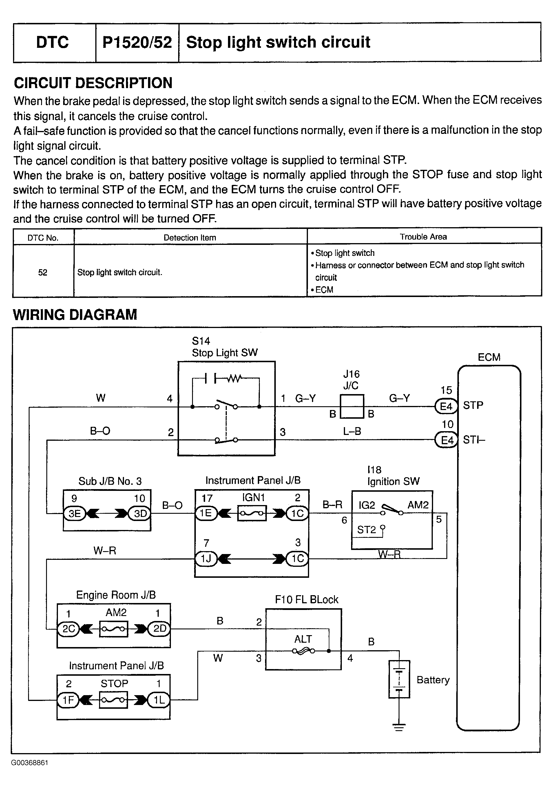 DTC P1520/52 : Stop Light Switch Circuit