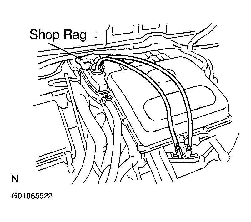 4. NOTE: To prevent coolant from splashing, place a shop rag on the overflow pipe as shown in Fig 4.