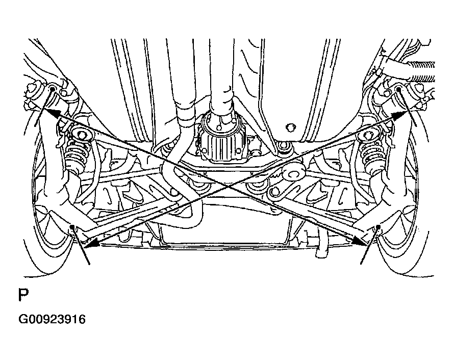 - Measure the distance from the LH lower suspension arm bracket set bolt to the RH axle carrier rear side set bolt as shown in Fig 4 .