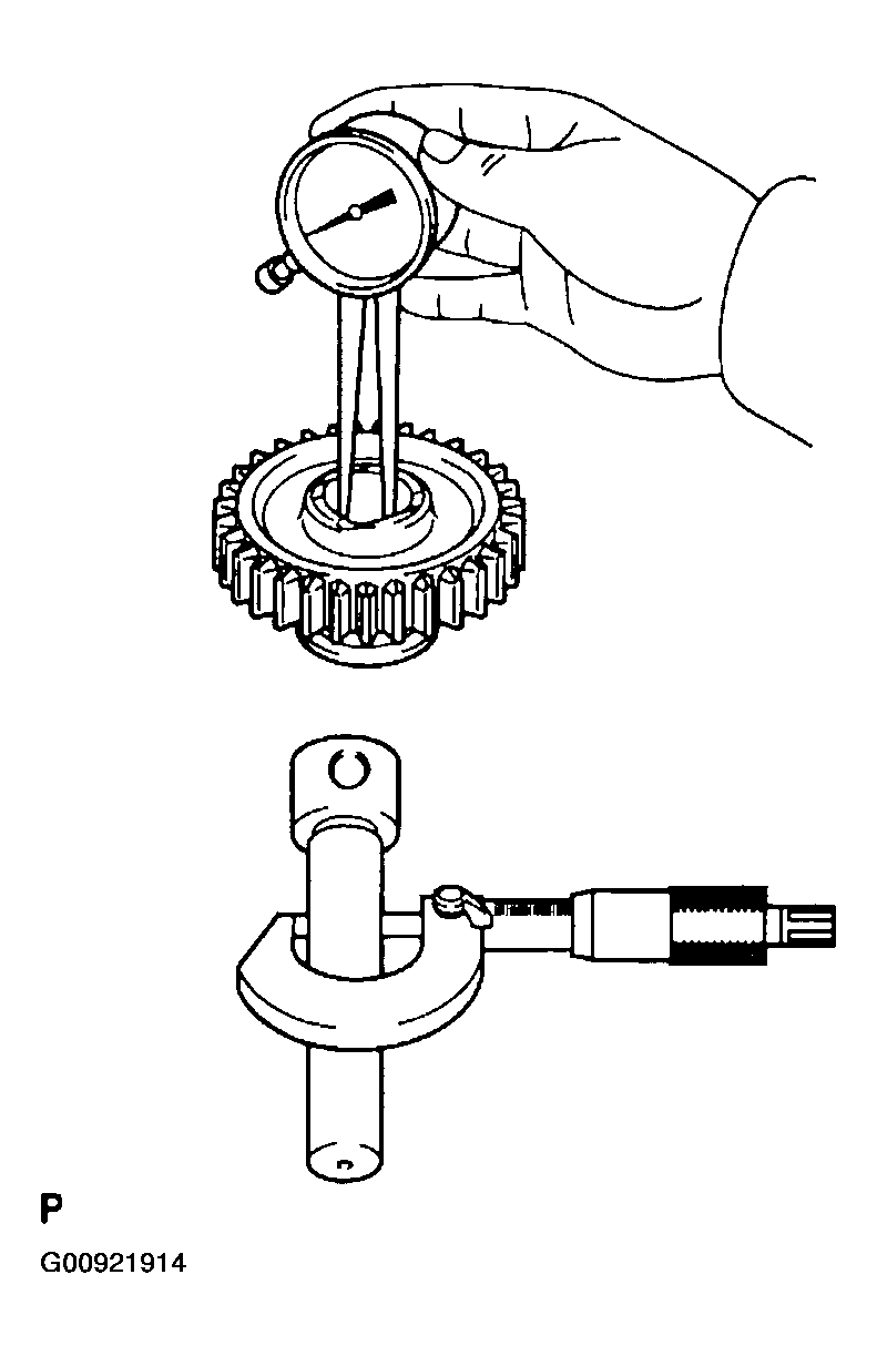 - Using a dial indicator, measure the 5th gear radial clearance.