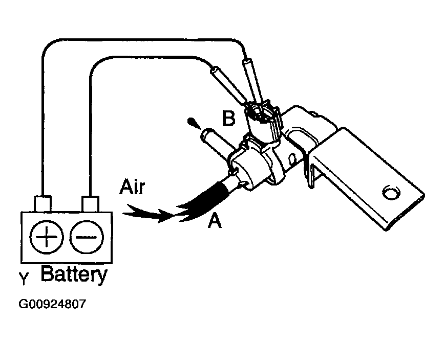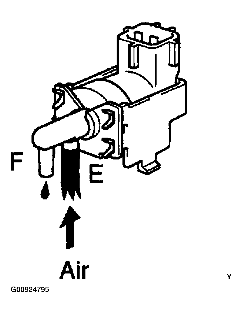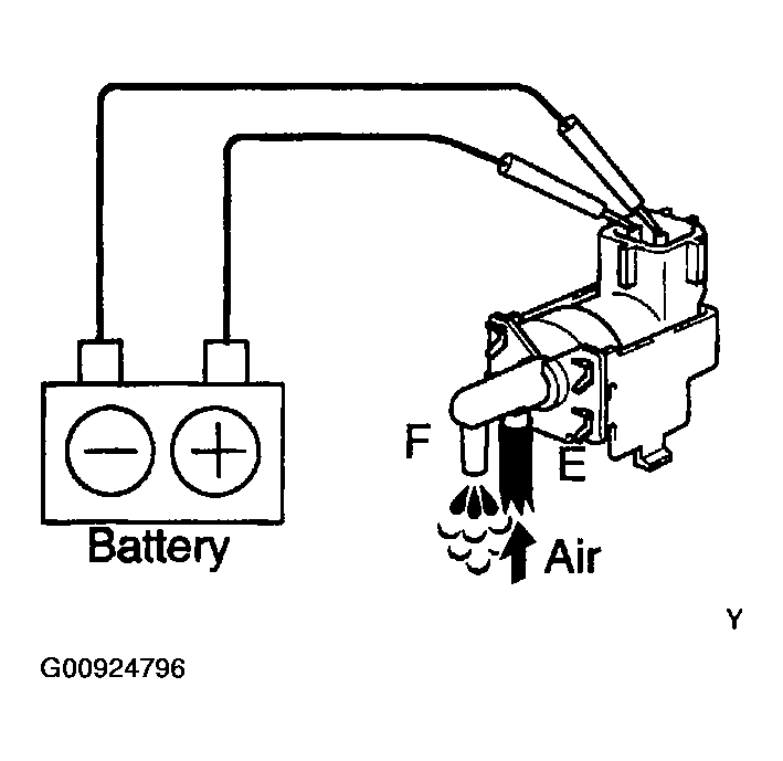 - Check that air flows from ports E to F shown in Fig 9.Fig 9: Checking Air Flows From Ports E To F While Applying Battery Positive Voltage Across Terminals