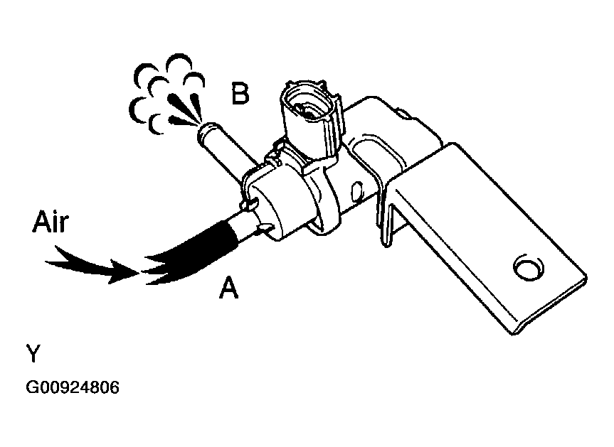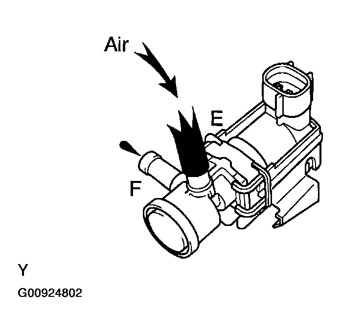 - While holding the air inlet port closed, apply vacuum (3.43 kPa, 25.7 mmHg, 1.01 in.Hg) to the EVAP port and check that air flows into the purge port.