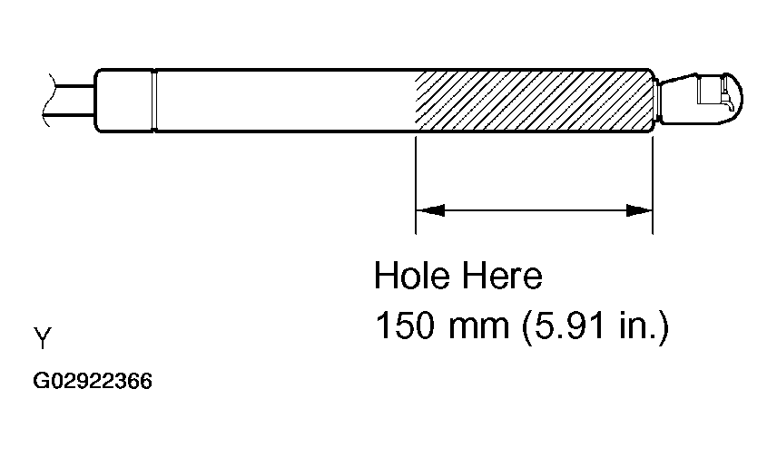 • If the back door stay is to be replaced, drill a 2.0 - 3.0 mm (0.079 - 0.118 in.) hole in the lower half of the bottom of the back door stay, as shown in Fig 1 , to completely release the high-pressure gas before disposing of it.
