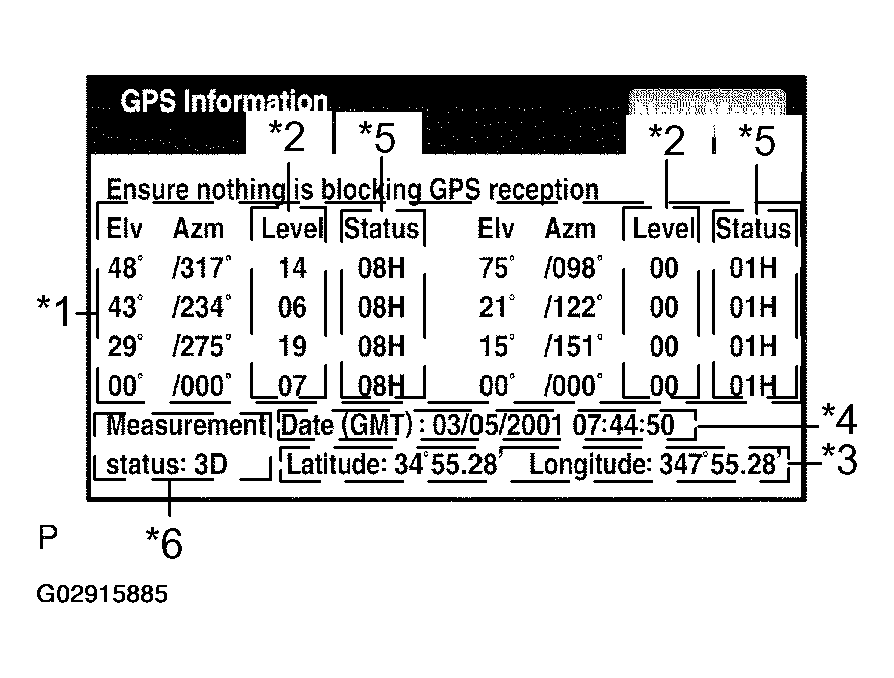 WAVE RECEPTION DISPLAY CONDITIONSDisplay Conditions 01H Complement no GPS 02H Chasing GPS satellites 04H Complement GPS but no using 08H Using GPS Courtesy of © TOYOTA, LICENSE AGREEMENT TMS1002