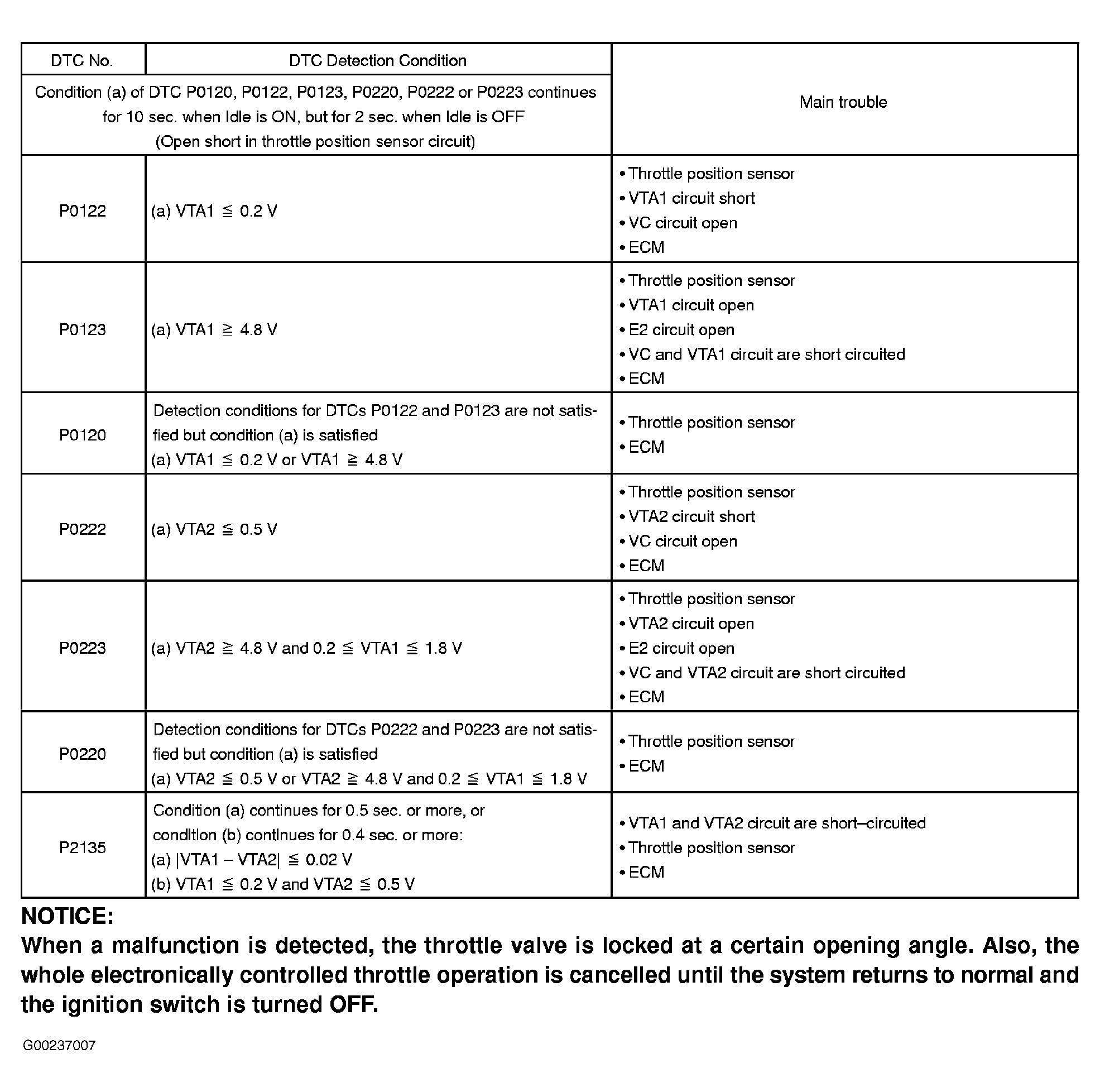 Home >> Toyota >> 2004 >> Matrix Base, FWD, Standard >> Repair and Diagnosis >> External Pages >> Different car >> Section 129 (Engine Control System Self Diagnostics) >> Diagnostic Tests >> DTC P0120, DTC P0122, DTC P0123, DTC P0220, DTC P0222, DTC P0223 Or DTC P2135 >> Possible Causes