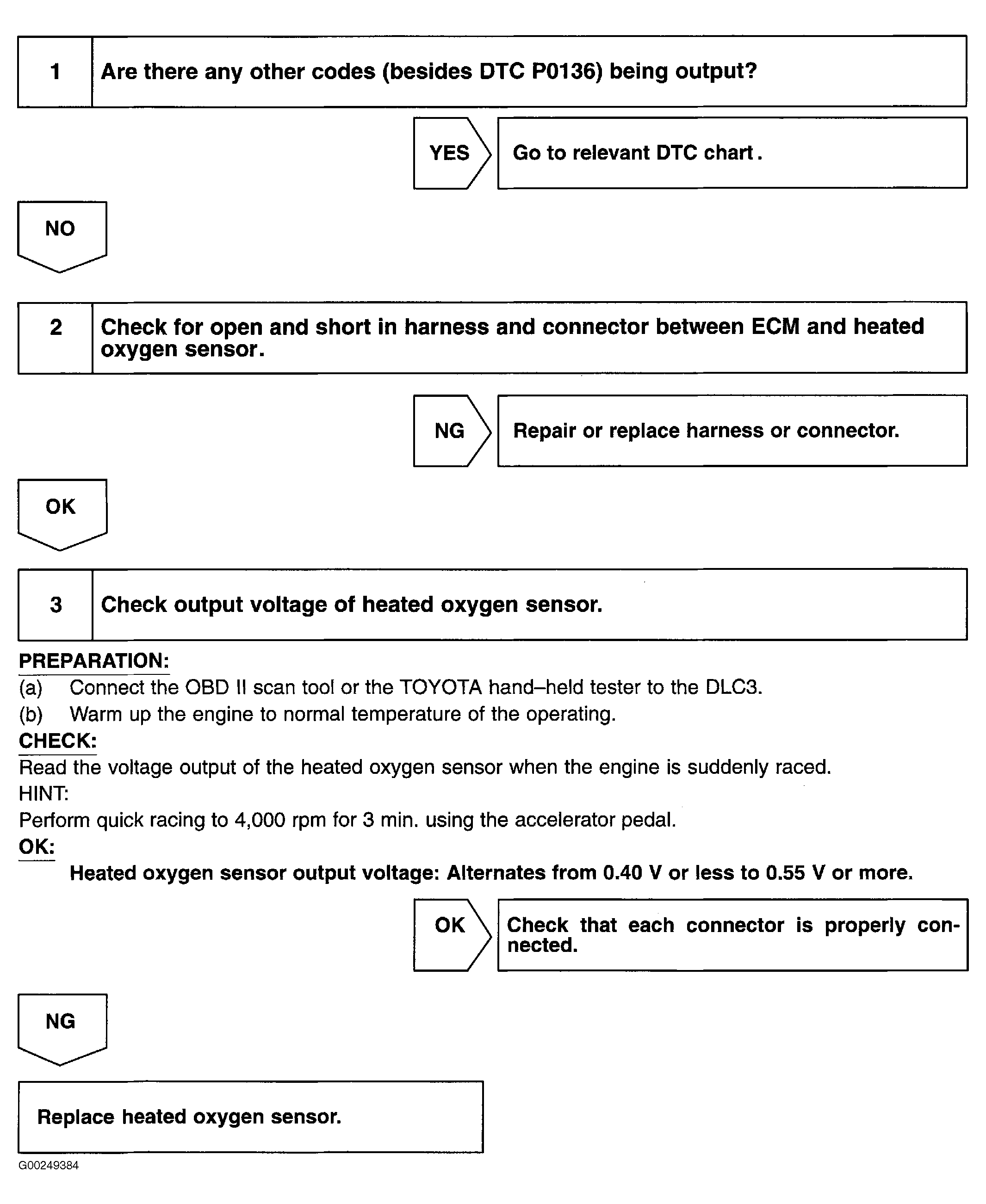 Home >> Toyota >> 2004 >> Matrix Base, FWD, Standard >> Repair and Diagnosis >> External Pages >> Different car >> Section 130 (Engine Control System Self Diagnostics) >> Diagnostic Tests >> DTC P0136: Heated Oxygen Sensor Circuit (Bank 1 Sensor 2) >> Diagnosis & Repair