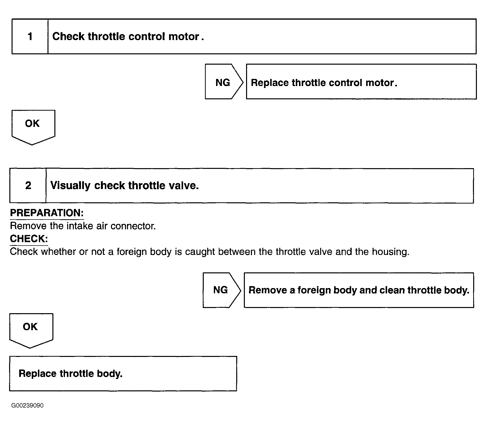 Home >> Toyota >> 2004 >> Matrix Base, FWD, Standard >> Repair and Diagnosis >> External Pages >> Different car >> Section 130 (Engine Control System Self Diagnostics) >> Diagnostic Tests >> DTC P2111: Throttle Actuator Control System - Stuck Open >> Diagnosis & Repair
