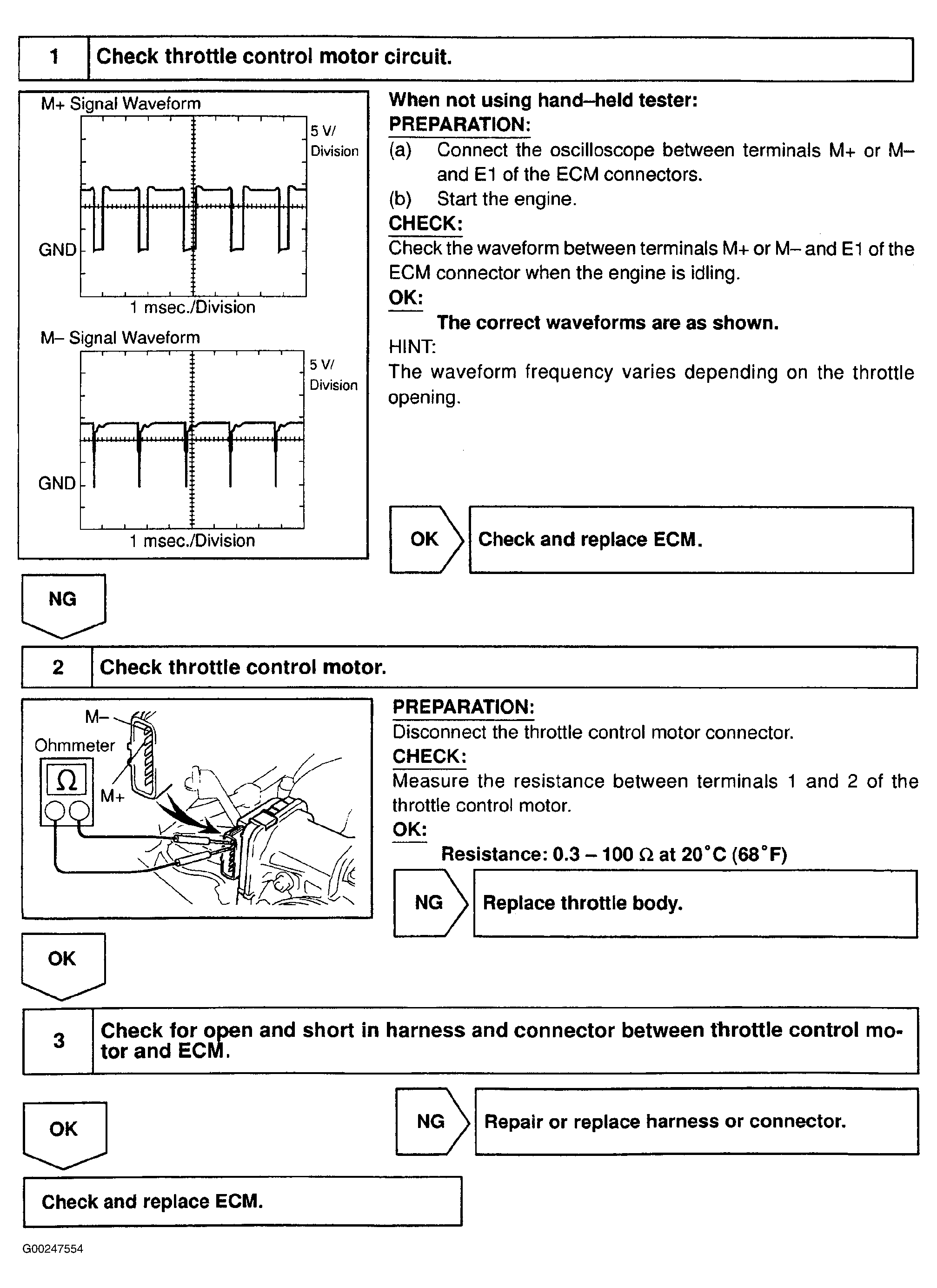 Home >> Toyota >> 2004 >> Matrix Base, FWD, Standard >> Repair and Diagnosis >> External Pages >> Different car >> Section 133 (Engine Control System Self Diagnostics) >> Diagnostic Tests >> DTC P2102: Throttle Actuator Control Motor Circuit Low Or P2103: Throttle Actuator Control Motor Circuit High >> Diagnosis & Repair