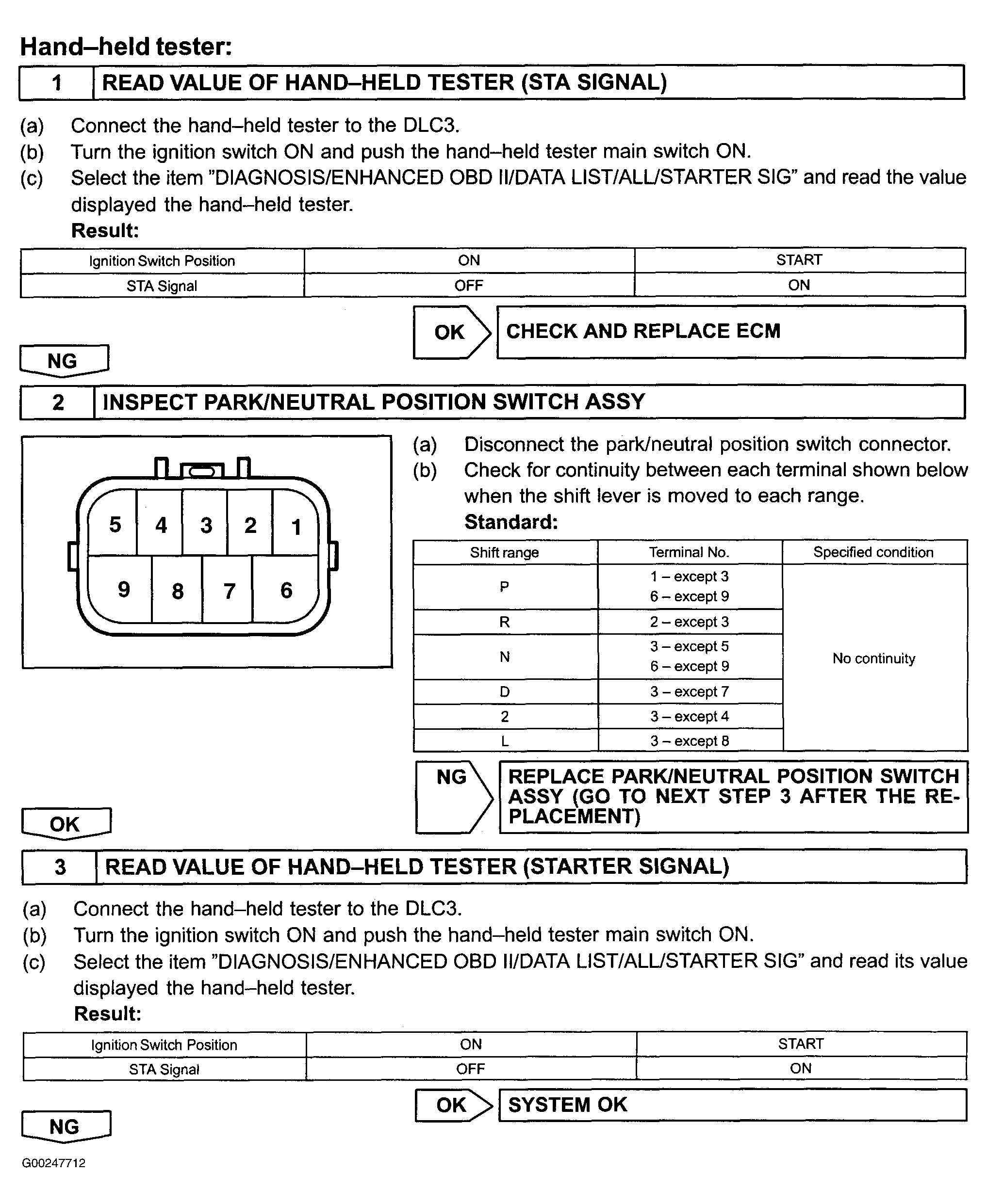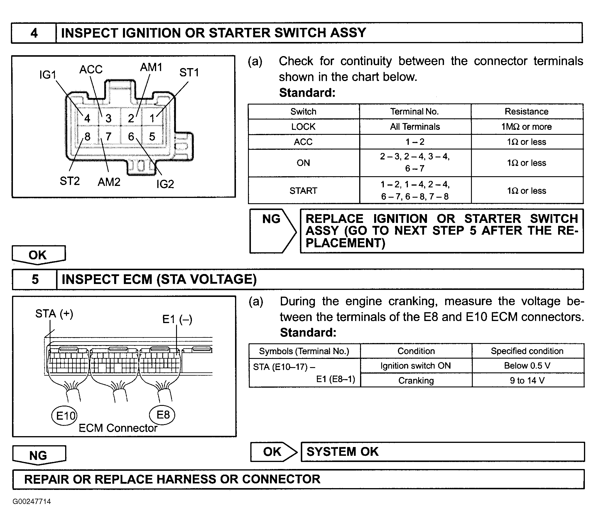 For starter signal circuit inspection and wiring diagram, see Figure, Figure, Fig 1-Fig 4 . Before replacing ECM, check ECM connectors and ground circuits. See ENGINE CONTROL MODULE POWER & GROUND CIRCUITS under COMPUTERIZED ENGINE CONTROLS.