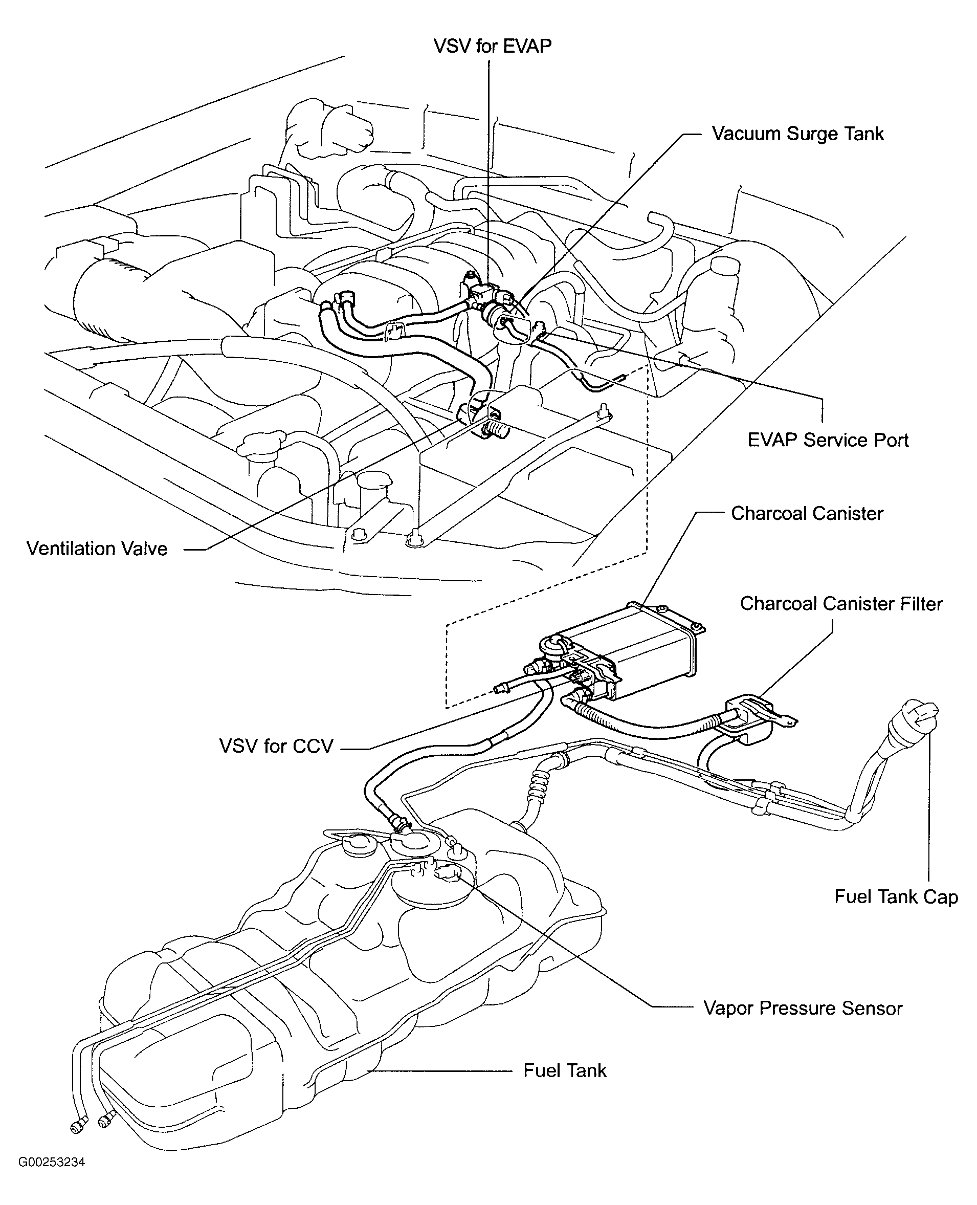 Fig 2: Locating Emission System Components In Engine Compartment (Camry - Up To Jan. 2003 Production)