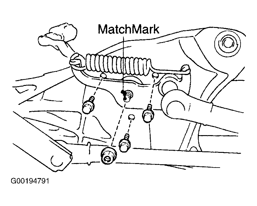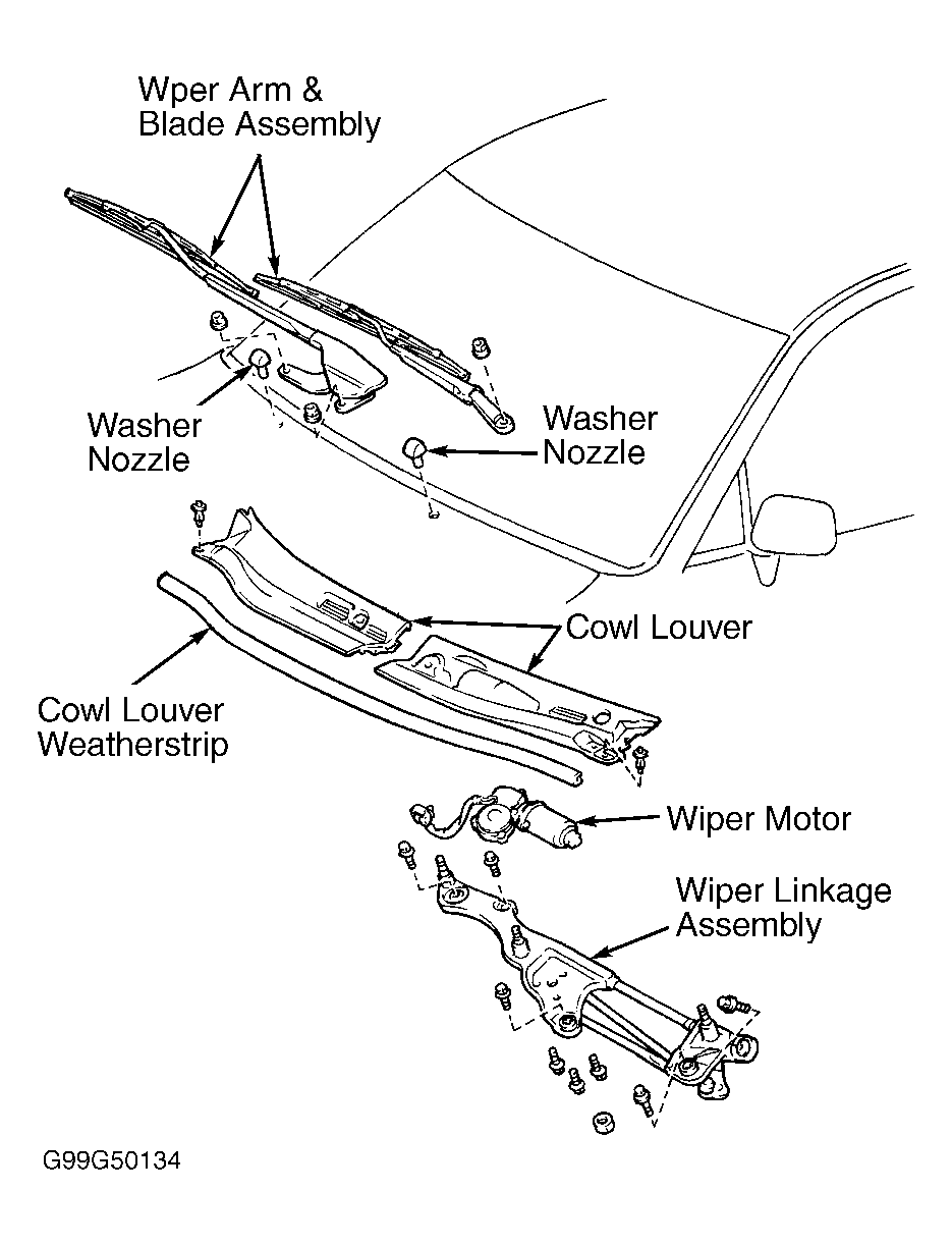 - Install the wiper motor with the 3 bolts to the wiper link. See TORQUE SPECIFICATIONS table. Align the matchmarks on the wiper link and wiper motor, then install the nut. See Figure.
