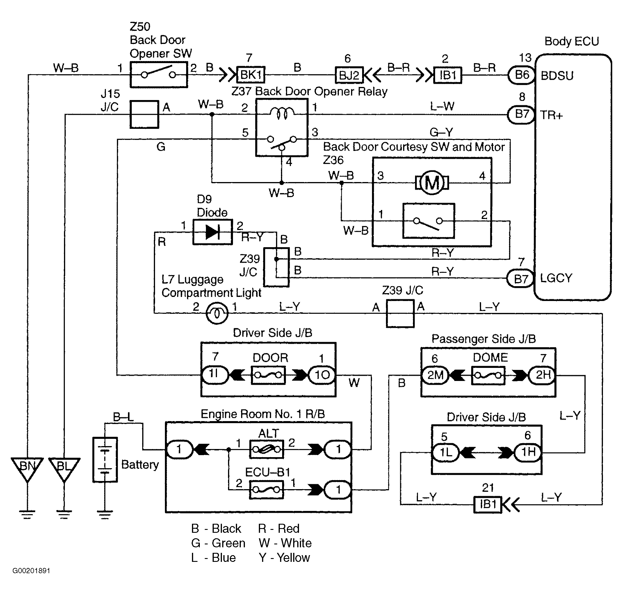 Fig 1: Identifying Back Door Courtesy Switch, Back Door Opener Relay & Motor Circuit