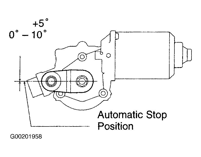 Connect the positive (+) lead from the battery to terminal 4 and the negative (-) lead to terminal 5, check that the motor operates at high speed. If operation is not as specified, replace the motor. See WIPER MOTOR (FRONT) under REMOVAL & INSTALLATION. - Stopping At Stop Position
