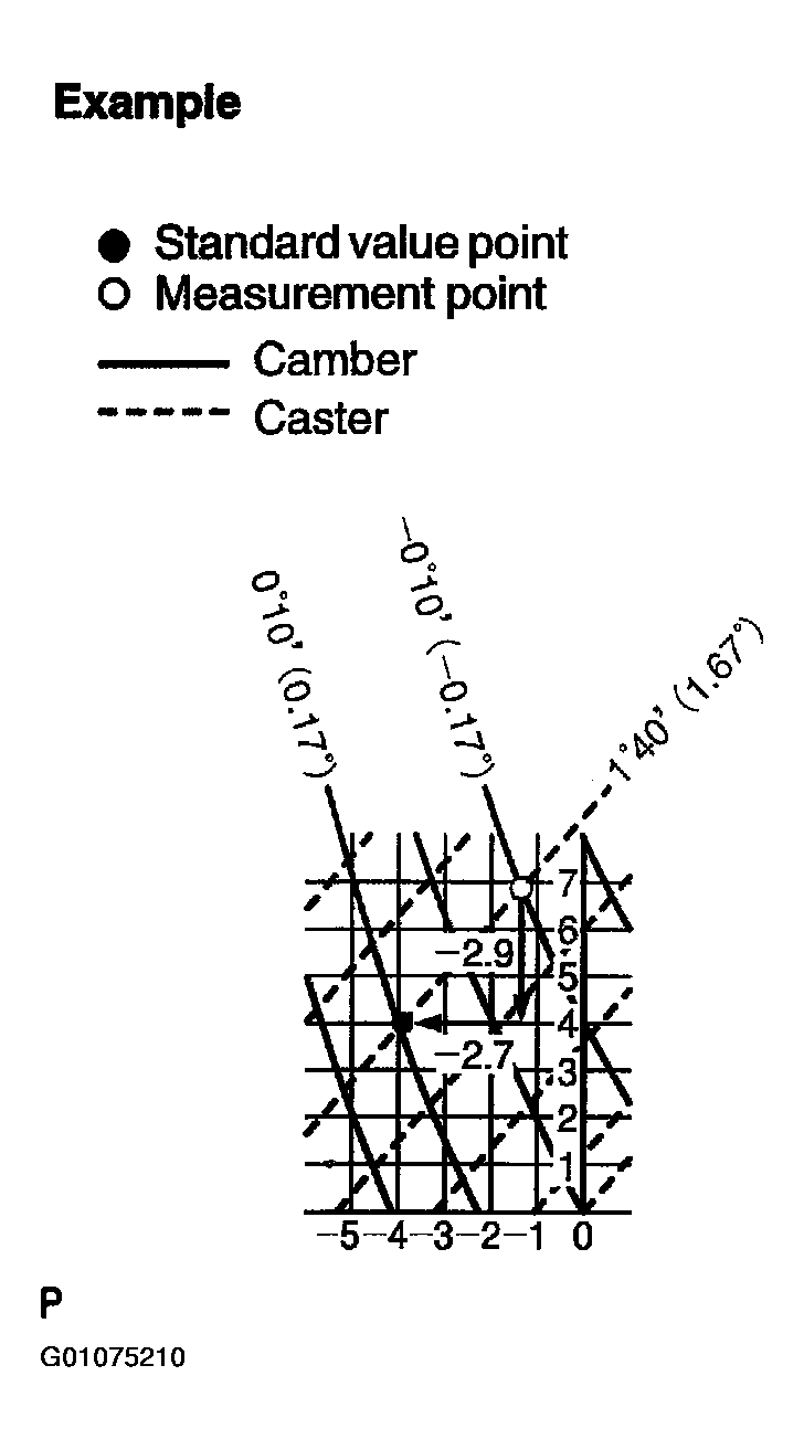 NOTE: Try to adjust the camber and caster to the center of the specified values.