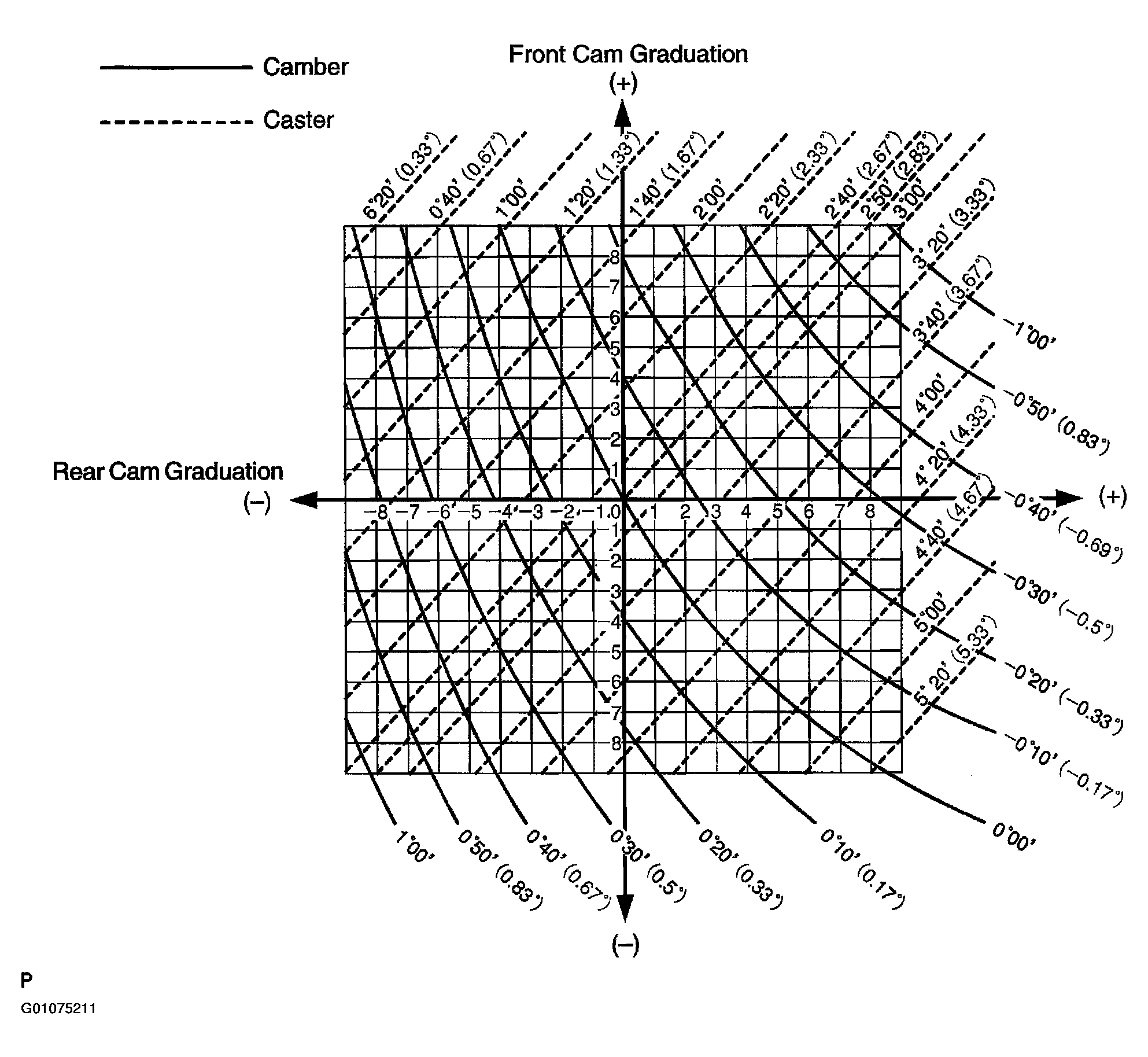 - As shown in the chart, read the distance from the measured value to the standard value, and adjust the front and/or rear adjusting cams accordingly. See Fig 4 and Fig 5