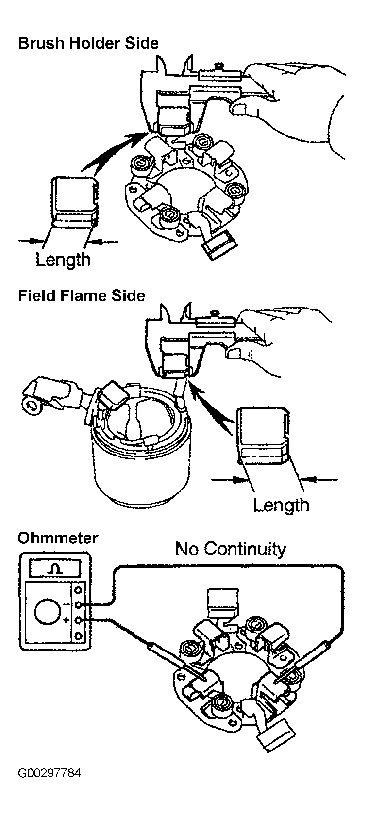 - Using an ohmmeter, check that there is no continuity between the positive and negative brush holders. See Fig 1.