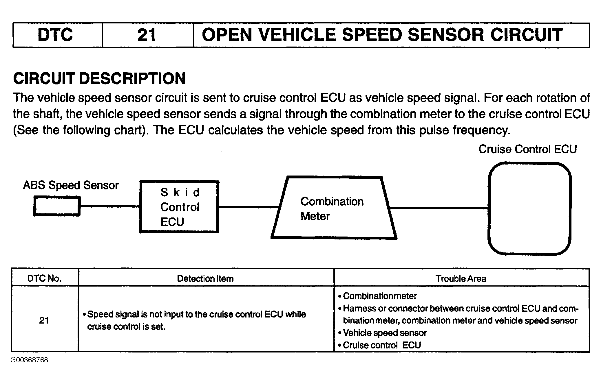 DTC 21: Open Vehicle Speed Sensor Circuit
