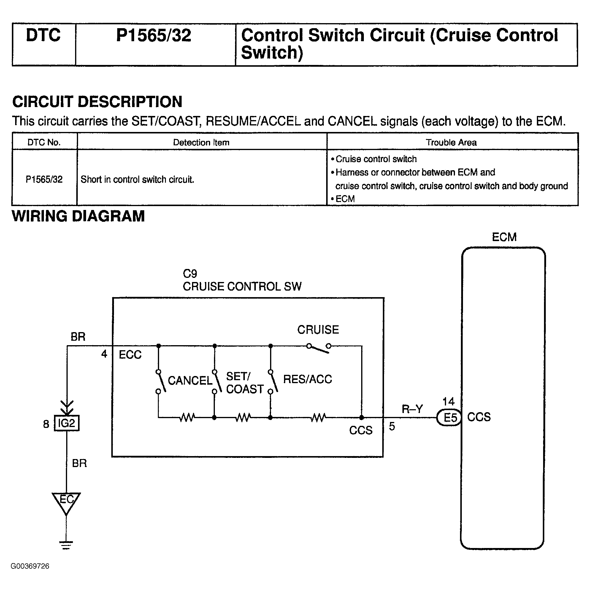 DTC P1565/32: Control Switch Circuit (Cruise Control Switch)