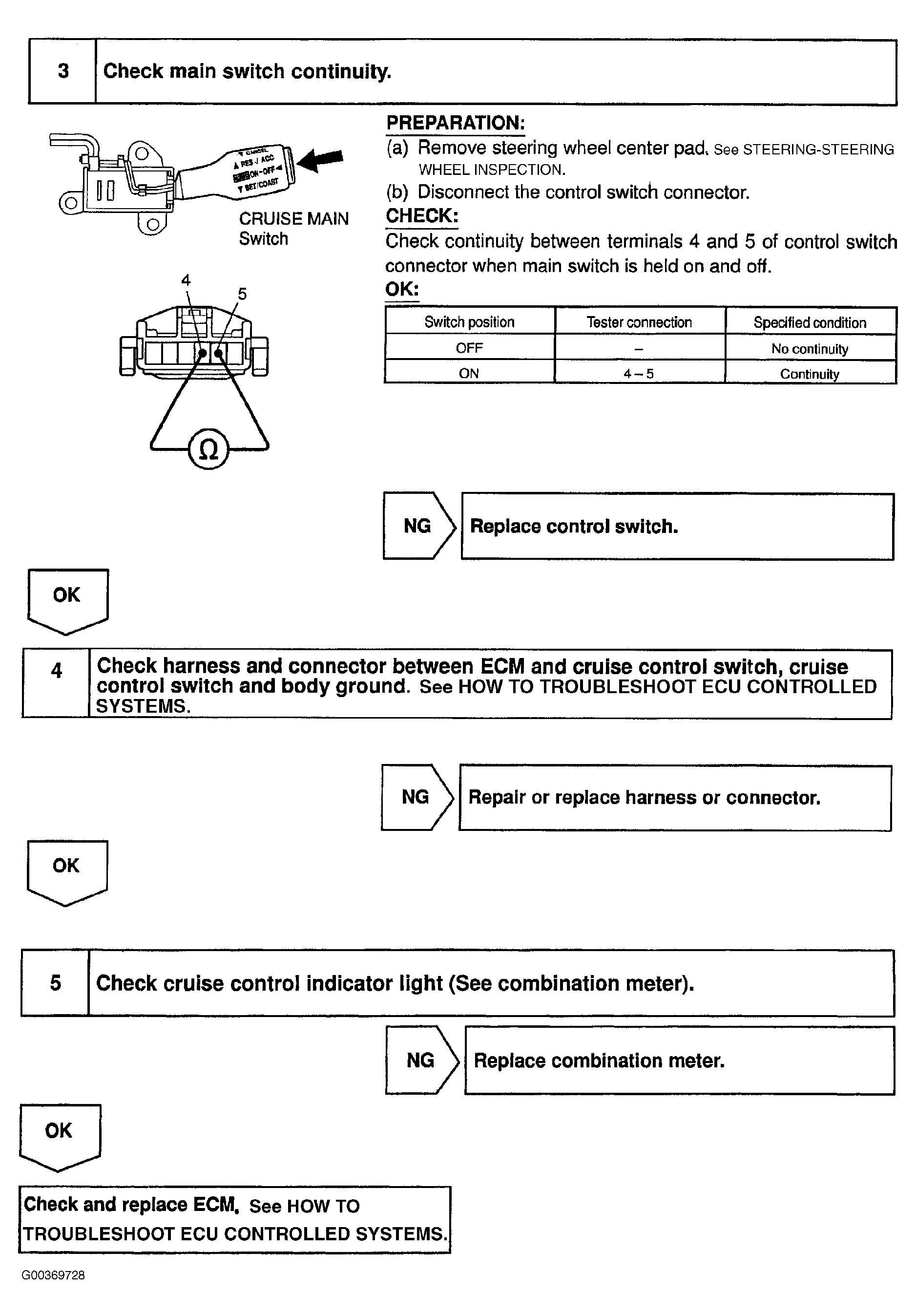 Fig 4: Identifying ECM & Cruise Control Switch Terminal Readings