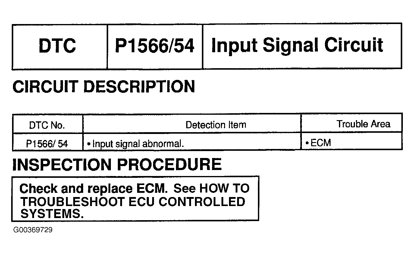 Home >> Toyota >> 2004 >> Matrix Base, FWD, Standard >> Repair and Diagnosis >> External Pages >> Different car >> Section 353 (Cruise Control Systems) >> Diagnostic Tests >> DTC P1566/54: Input Signal Circuit