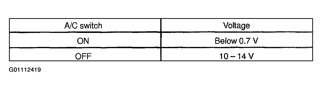 - Measure voltage between terminal MGC of A/C amplifier connector and body ground when A/C switch is On and OFF. If OK , see Fig 2.