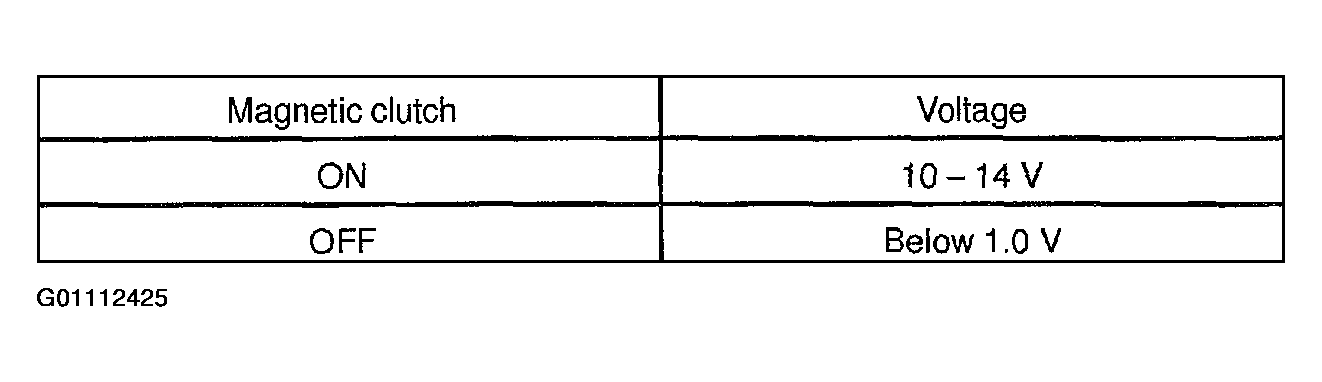 Check: Connect positive (+) lead connected to battery to magnetic clutch connector terminal 3 and negative (-) lead to body ground. If OK , magnetic clutch is energized.