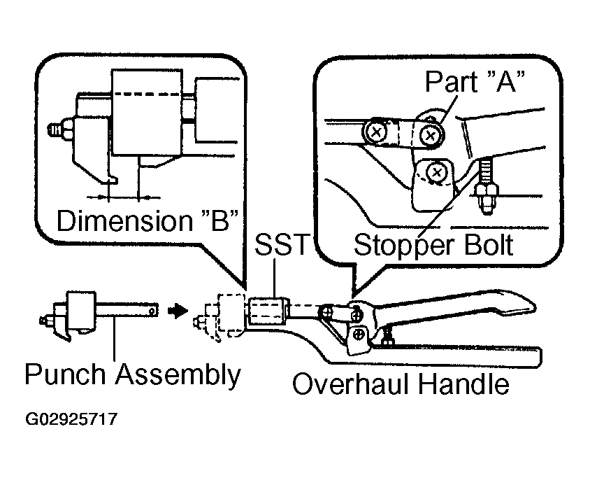 - Lightly press SST against the lock plate in the order shown in Fig 6. After repeating this a few times, fully caulk the lock plate by gripping the handle until stopped by the stopper plate.