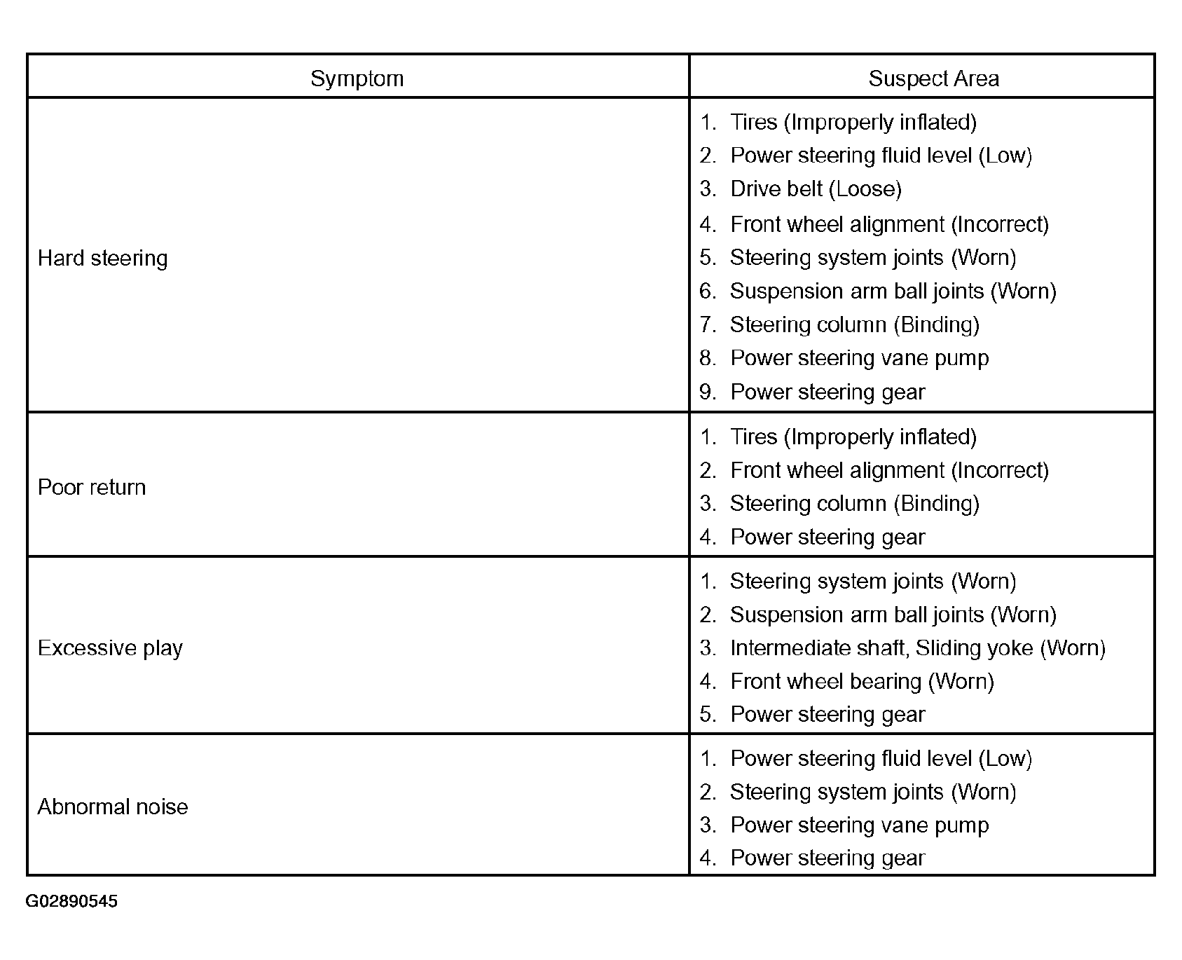Use the table in Fig 1 to help you find the cause of the problem. The numbers indicate the priority of the likely cause of the problem. Check each part in the order shown. If necessary, repair or replace these parts.
