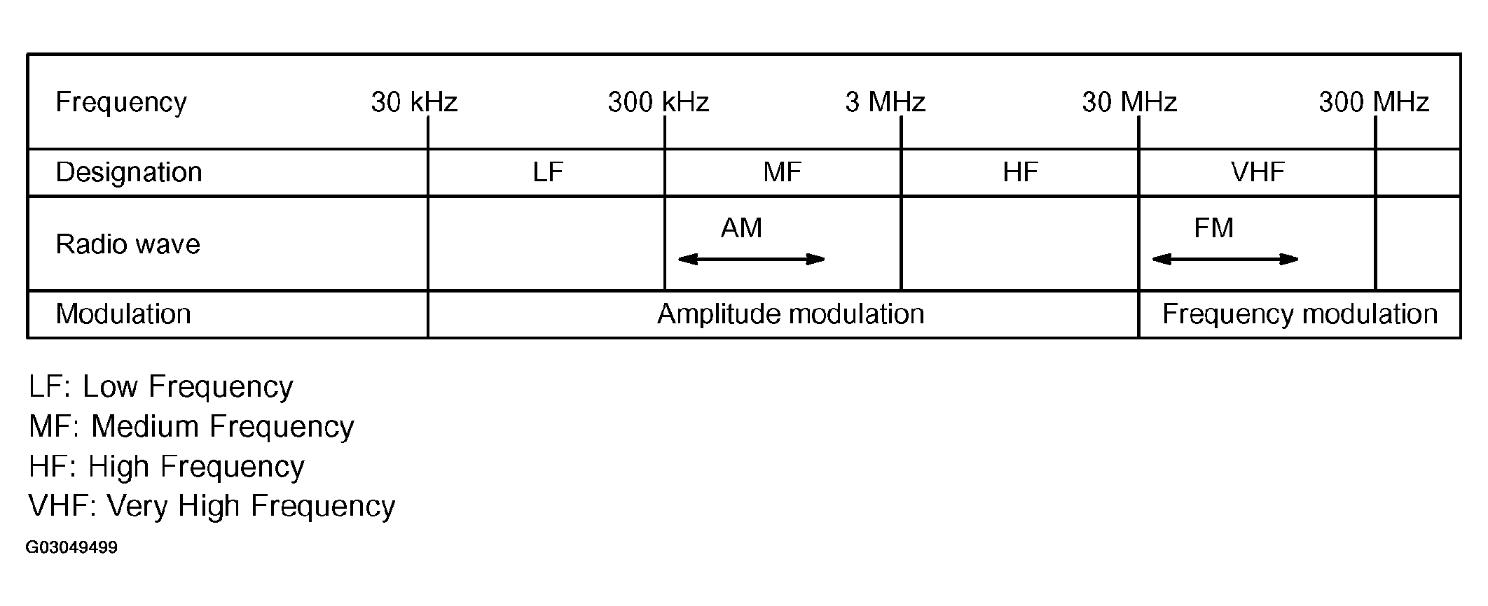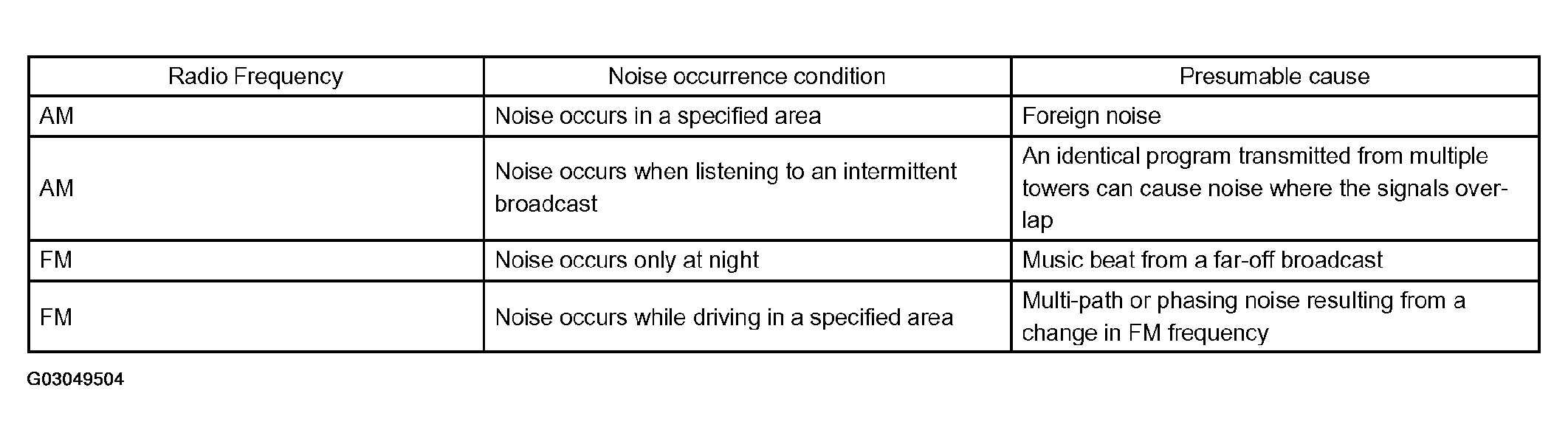 FM radio frequency is higher than AM. Therefore, it is more likely to be reflected by large obstructions such as tall buildings or mountains. For this reason, the FM signal will gradually weaken or disappear when the vehicle is behind such obstructions. This phenomenon is known as "fade out".