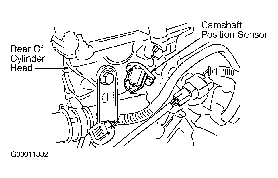 1. Disconnect electrical connector at appropriate VVT sensor. VVT sensors are located at flywheel end of each cylinder head, just below valve cover and may also be referred to as camshaft position sensors. See Figure.
