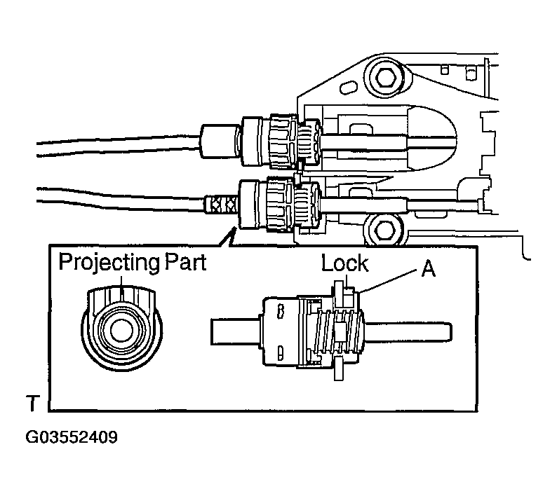 - Turn the lock and separate the select cable from the shift lever retainer.