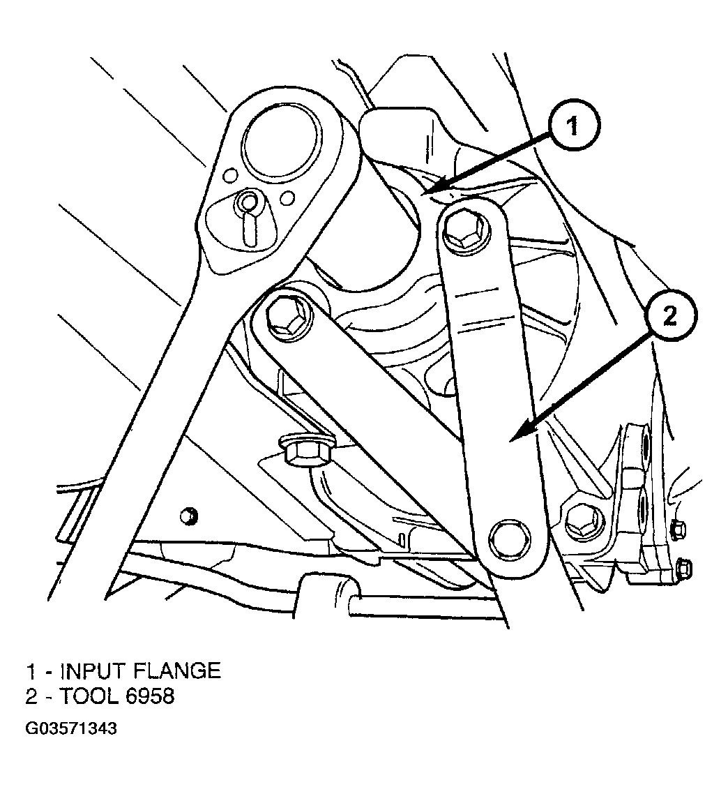 4. Using tool 6958, torque flange nut to 135 N.m (100 ft. lbs.) (Fig 5 ).