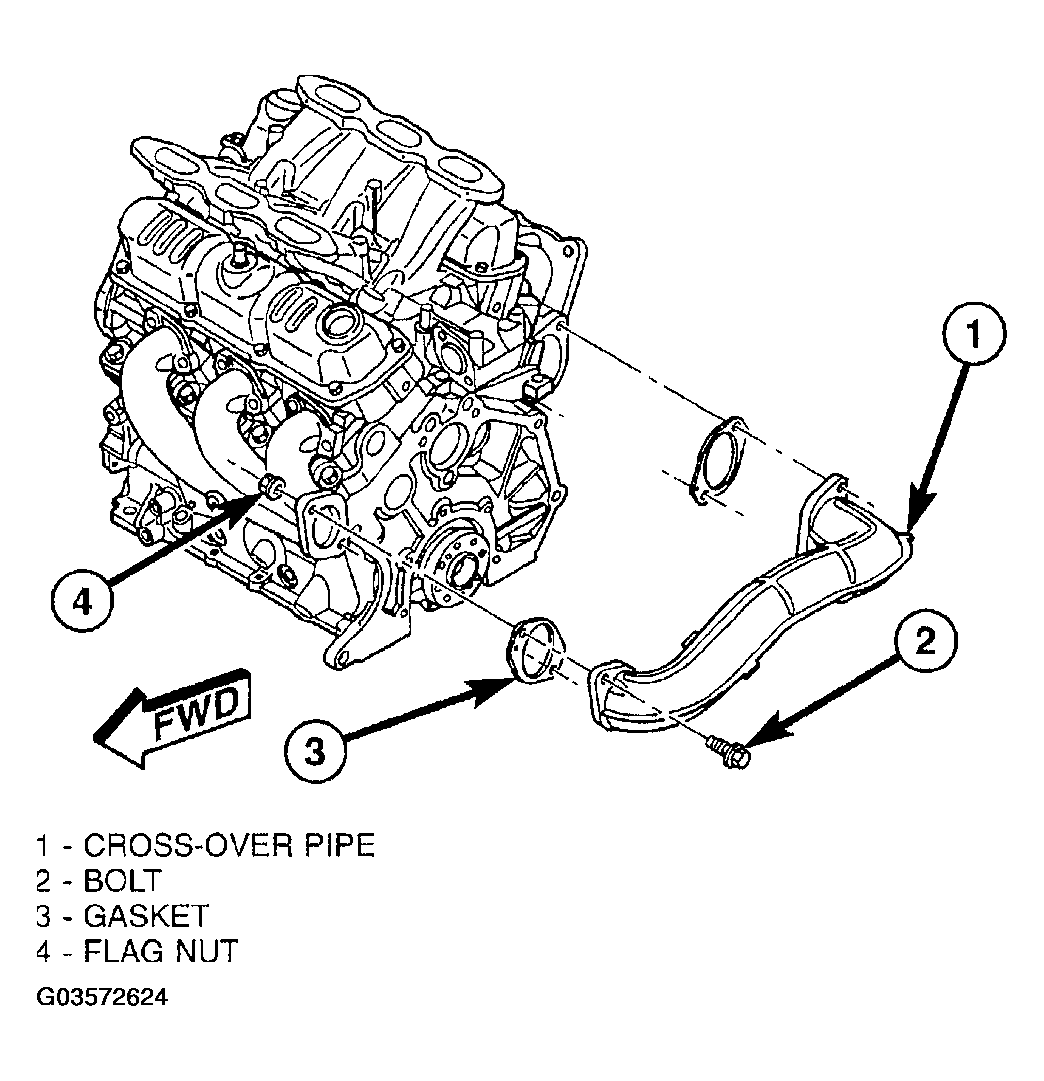 - Remove the cross-over pipe support fastener.