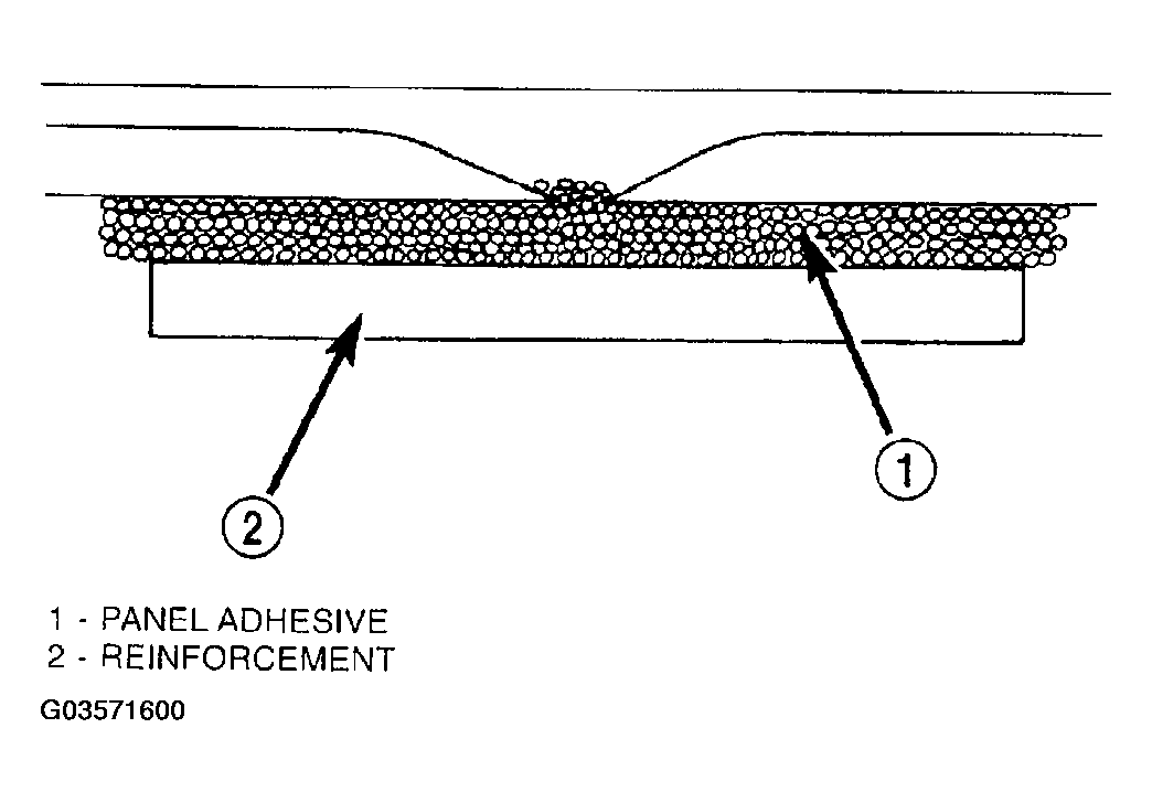 Structural repair procedures for rigid panels with large cracks and holes will require a reinforcement backing. Reinforcements can be made with several applications of glass cloth saturated with structural adhesive. Semi-rigid or flexible repair materials should be used for semi-rigid or flexible backing reinforcement (Fig 1) and (Fig 2). Open meshed fiberglass dry wall tape can be used to form a reinforcement. The dry wall tape allows the resin to penetrate through and make a good bond between the panel and the adhesive. Structurally, the more dry wall tape used, the stronger the repair.