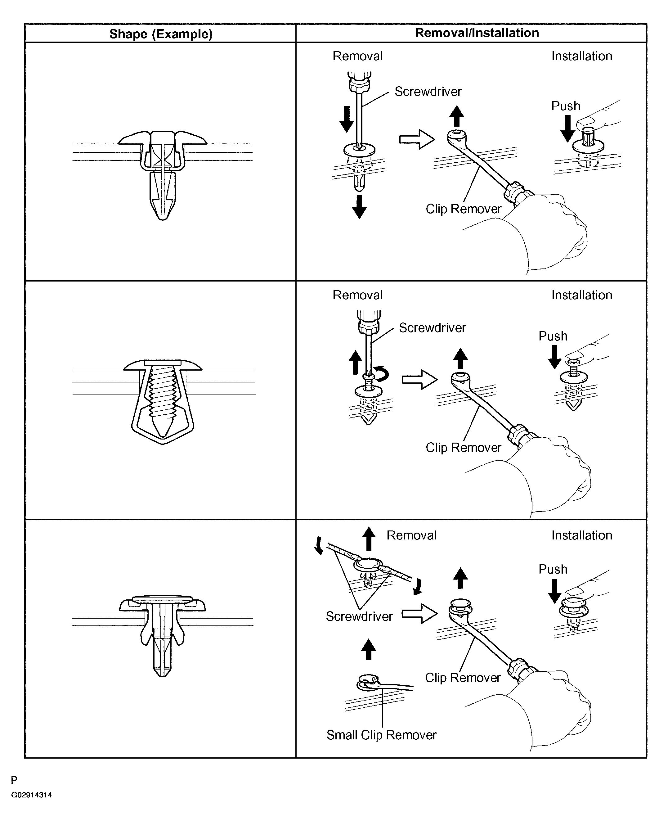 1. The removal and installation methods of typical clips used in body parts are shown in Fig 5 and Fig 6.