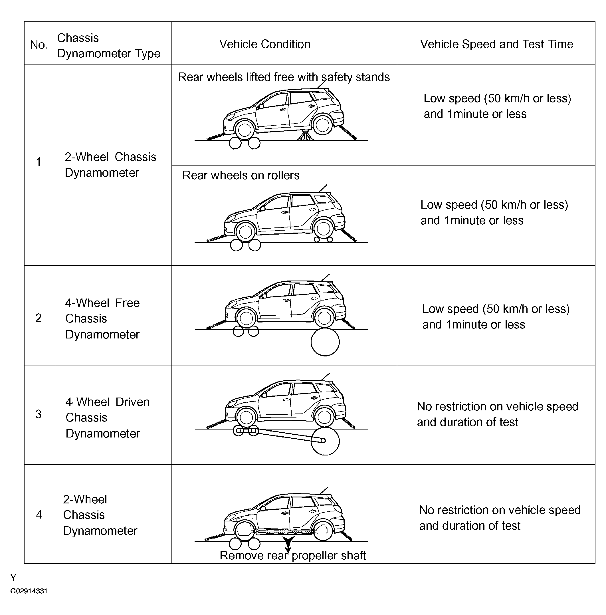 NOTE: Tester with a function of 2-wheel load setting (2-wheel power absorption type) cannot be used; such as a 2-wheel chassis dynamometer, and a combined tool of a 2-wheel chassis dynamometer, a speedometer tester and a brake tester.