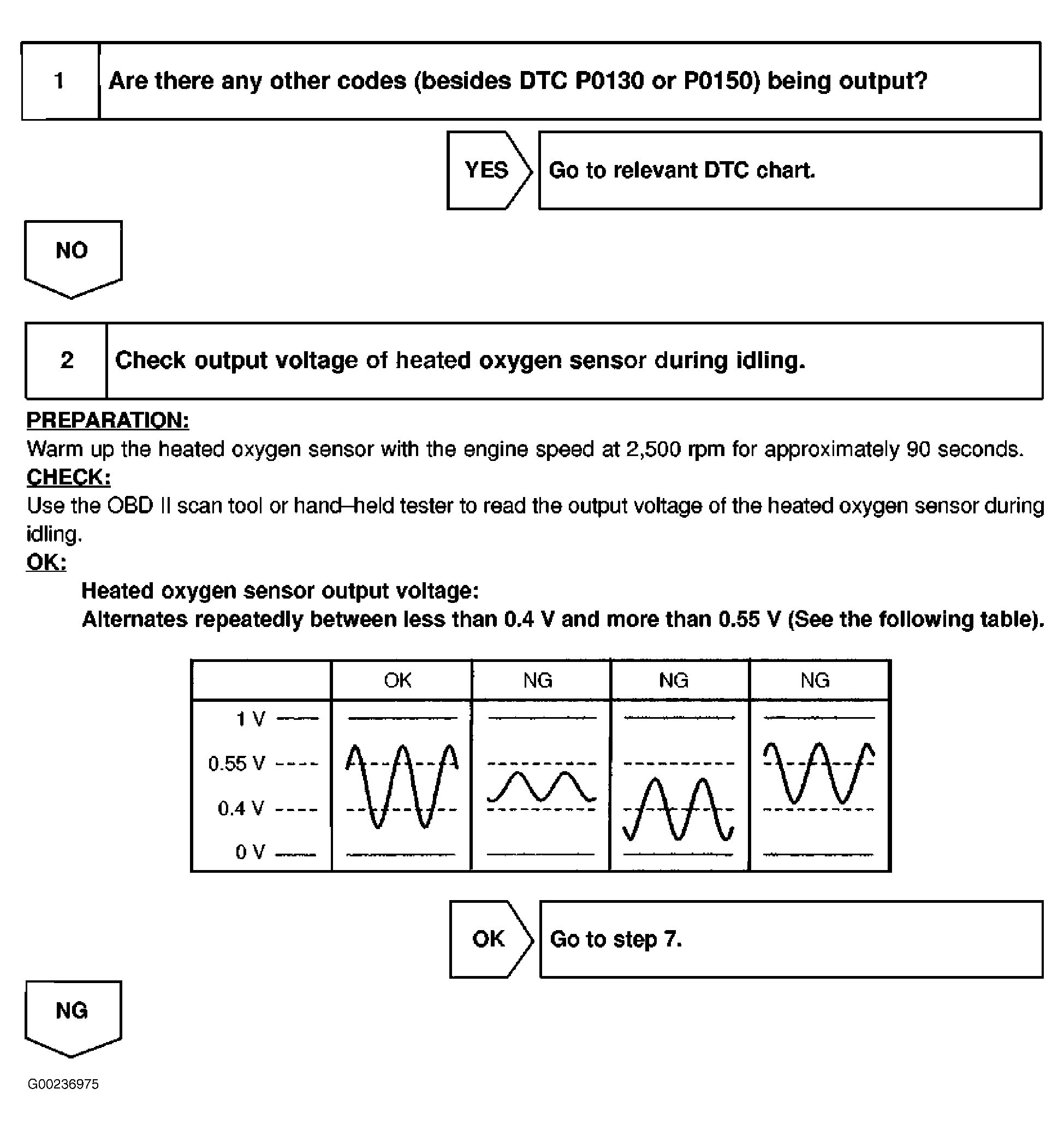 Fig 2: DTCs P0130 & P0150 Diagnostic Procedure (Steps 3-5)