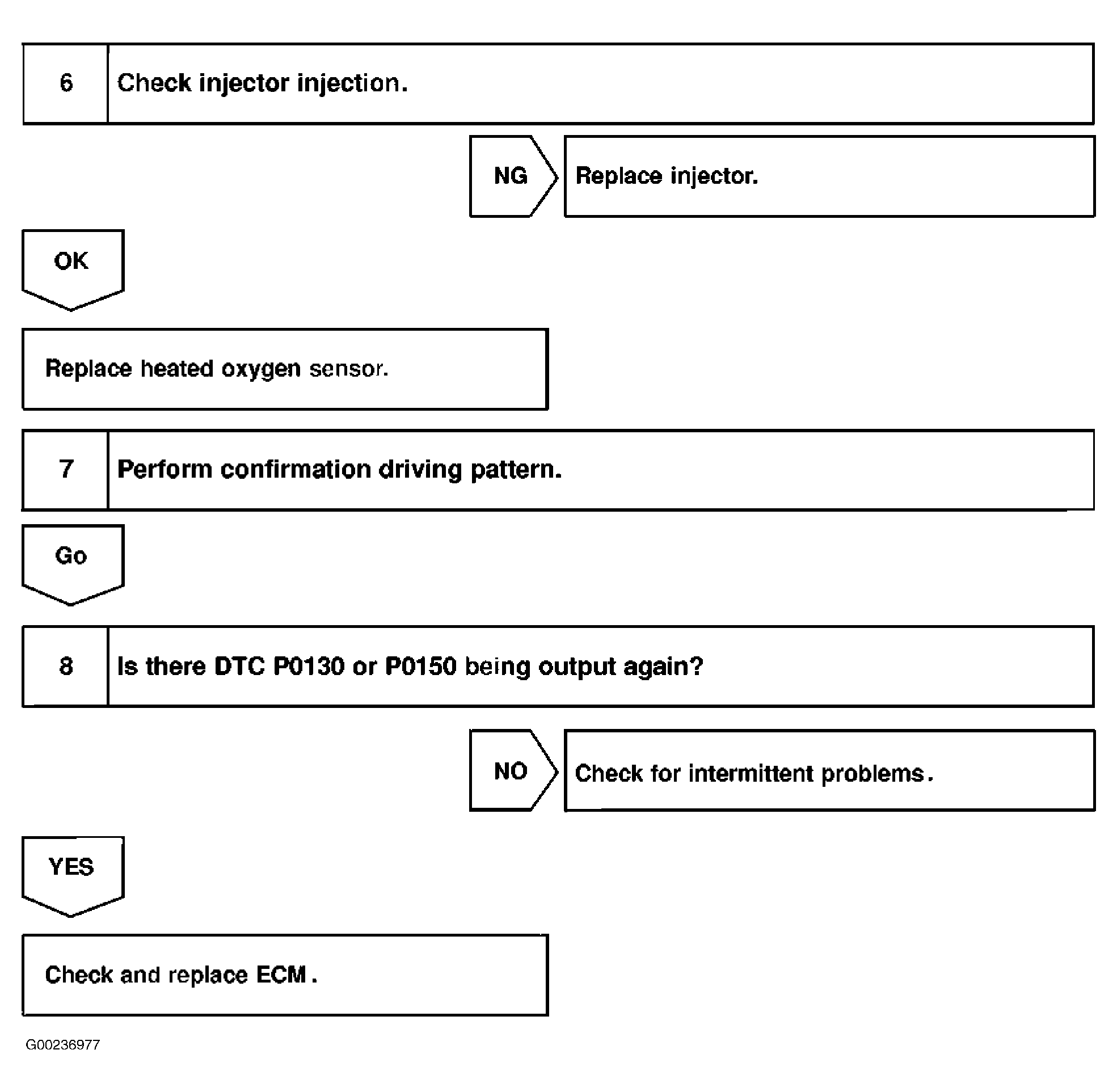 Fig 3: DTCs P0130 & P0150 Diagnostic Procedure (Steps 6-8)